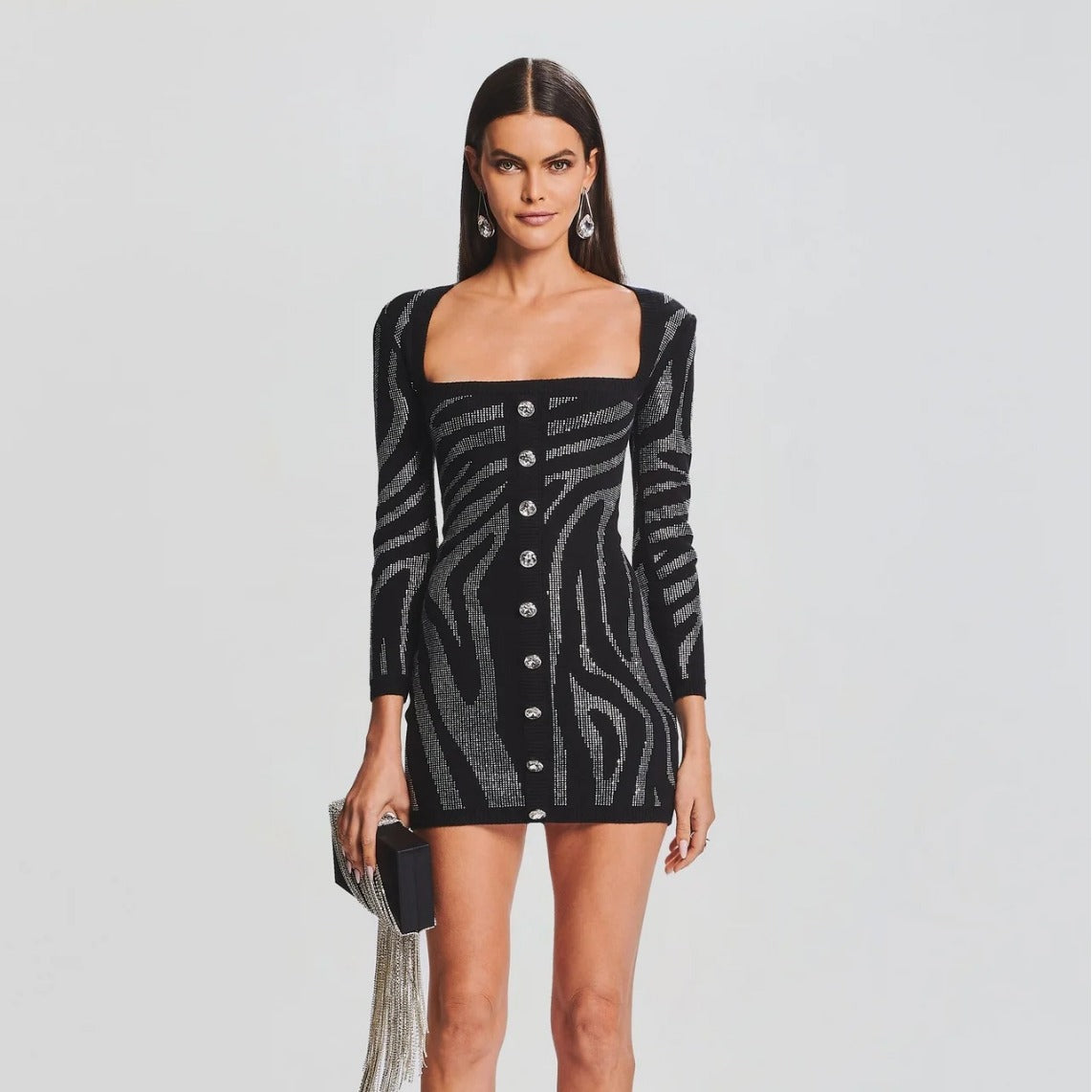 Rhinestone Long Sleeve Tube Top Short Type Bandage One Piece