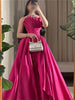 Rose Pink Silk Strapless A-line Sleeveless Prom Dress Details: