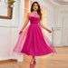 Rose Red Slim Fit Sleeveless Elegant Single Shoulder Suspender Diagonal Collar Mesh Socialite High End Dress