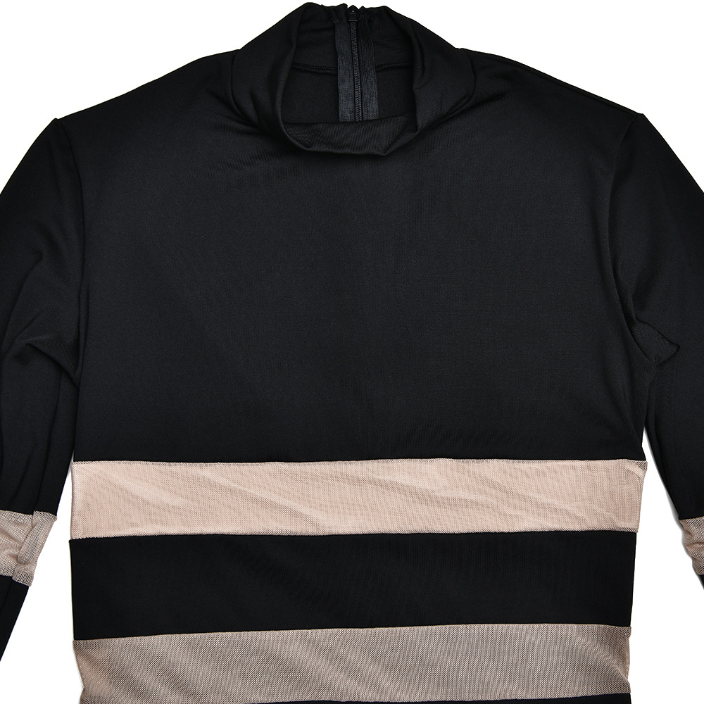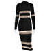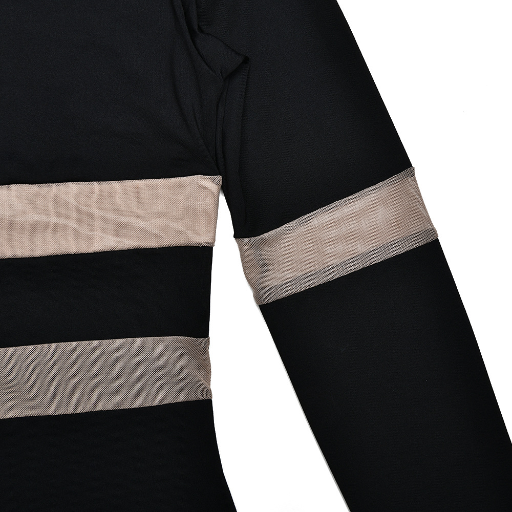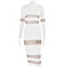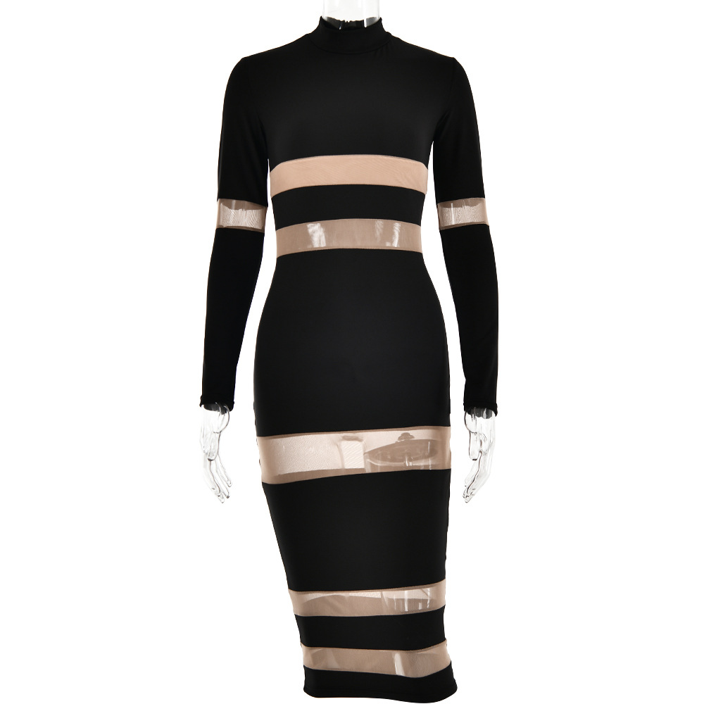 Round Neck Long Sleeved Design Stitching See through Maxi Dress Autumn