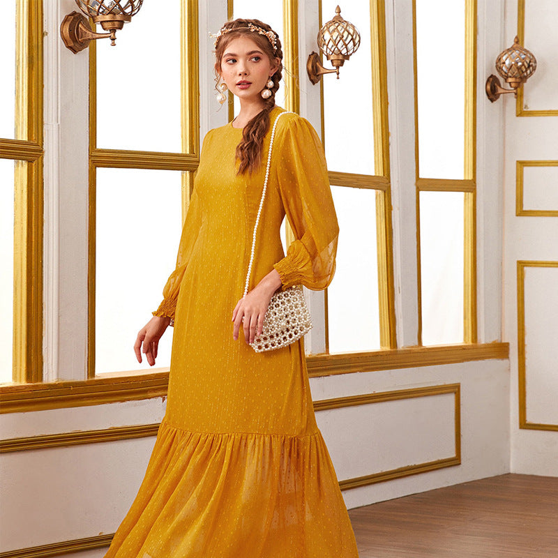 Round Neck Maxi Dress Lantern Sleeve Loose Maxi Dress