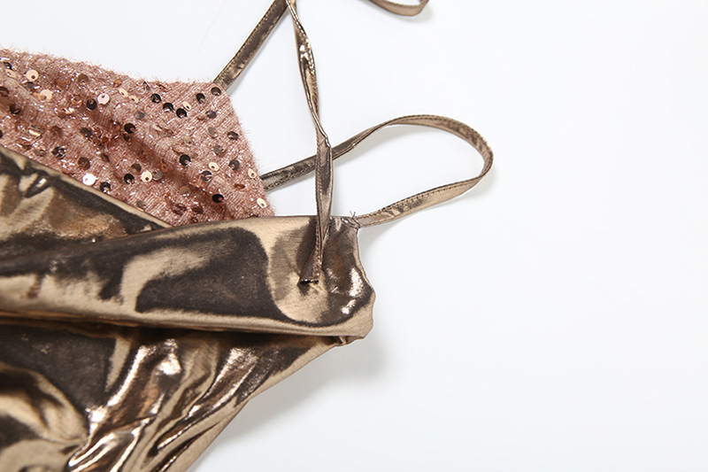 Sequ Stitching Faux Two Pieces Halter Lace up Dress