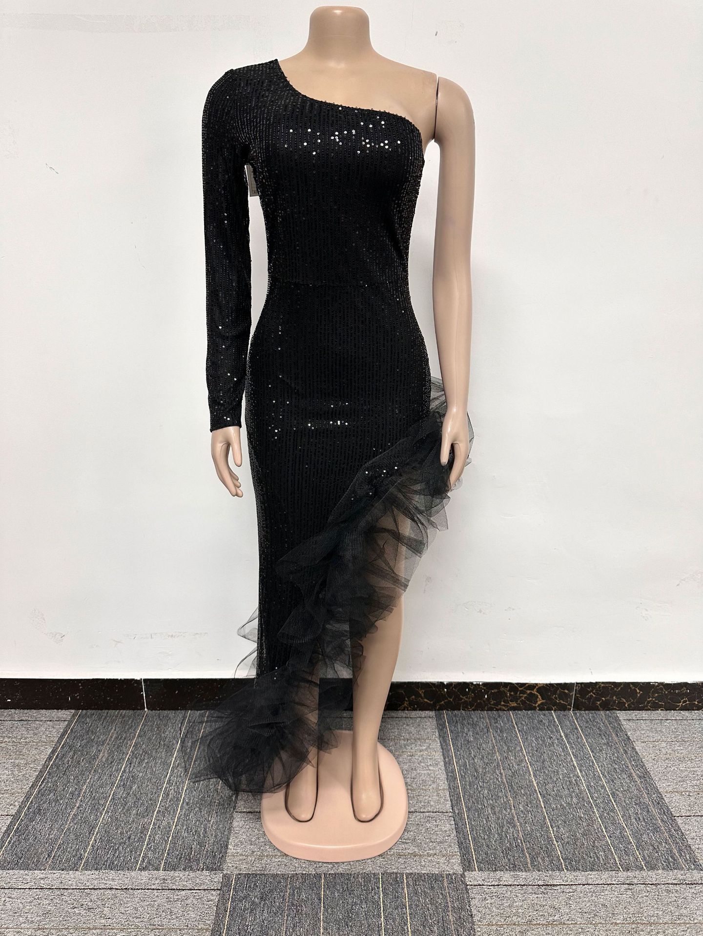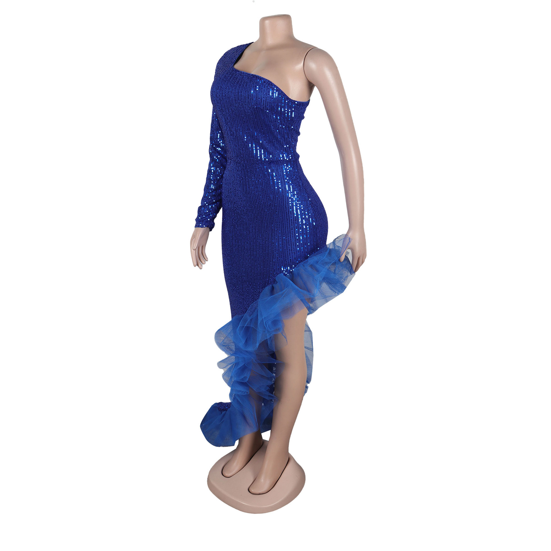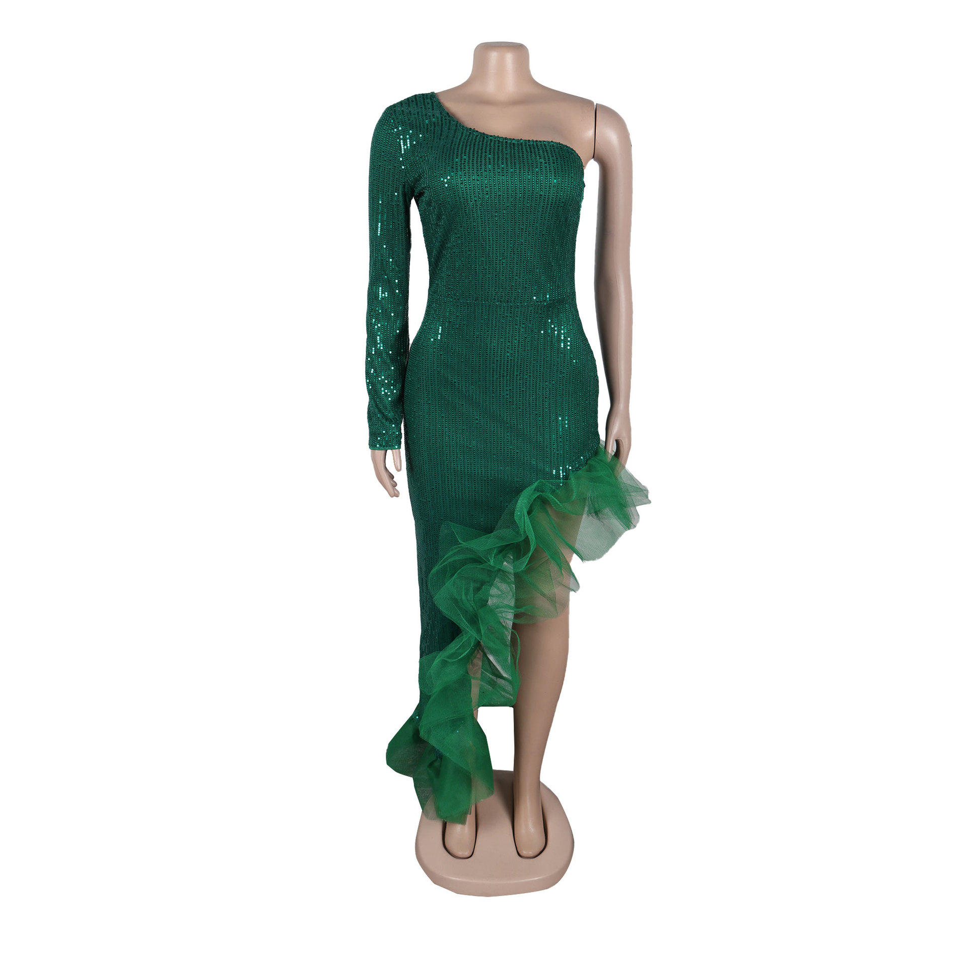 Sequin Single Shoulder Mesh Stitching Irregular Asymmetric Dress