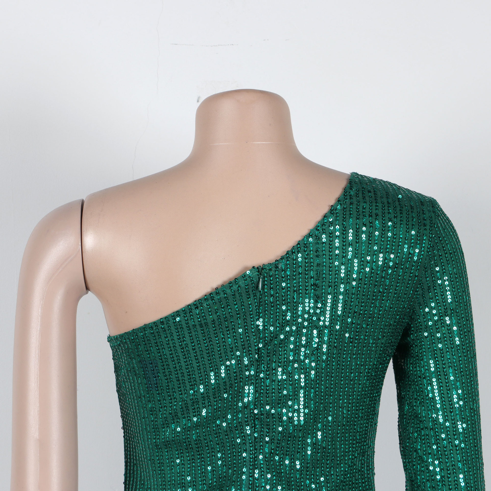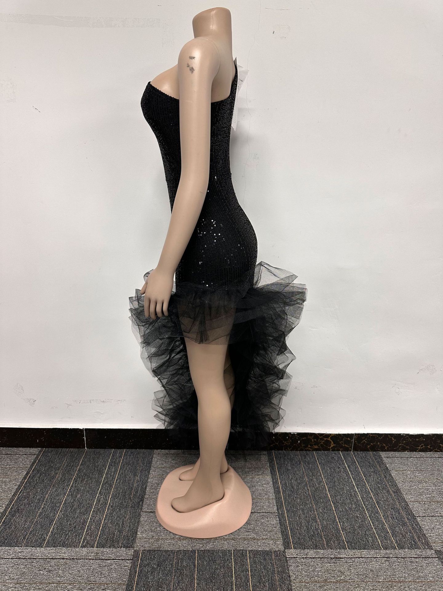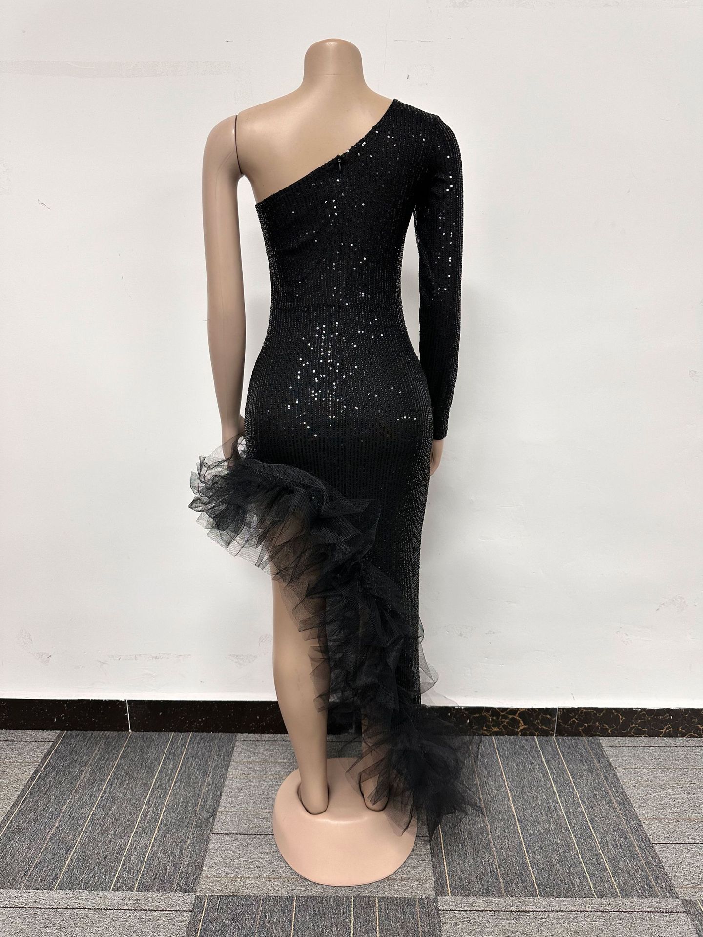 Sequin Single Shoulder Mesh Stitching Irregular Asymmetric Dress