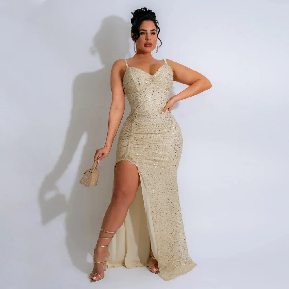 Sequined High Side Split Mermaid Maxi Dress
