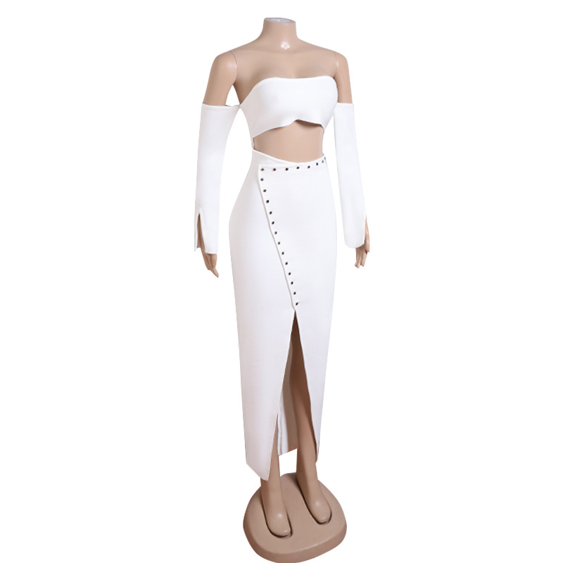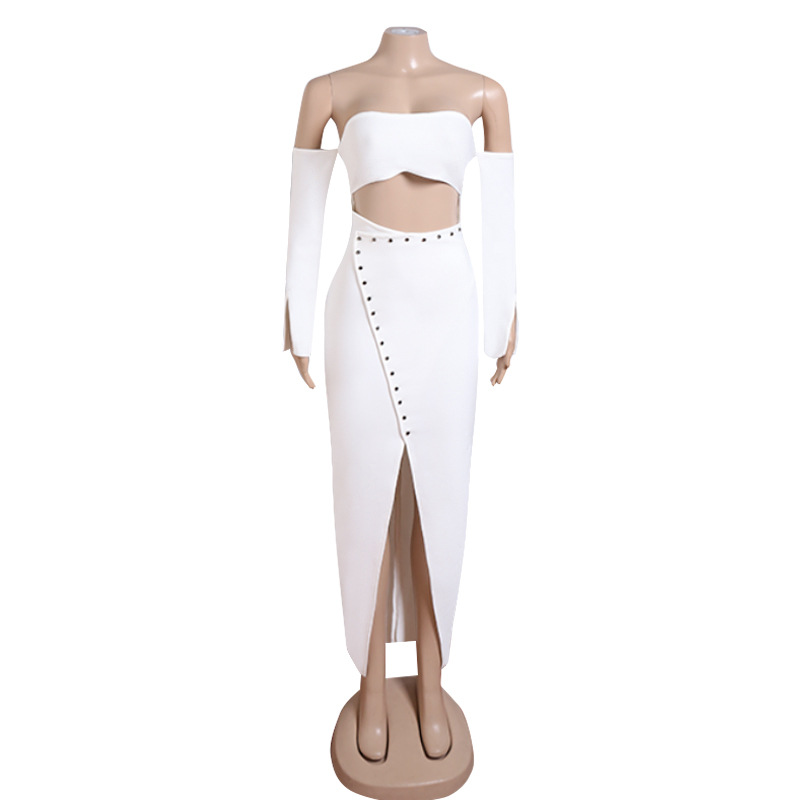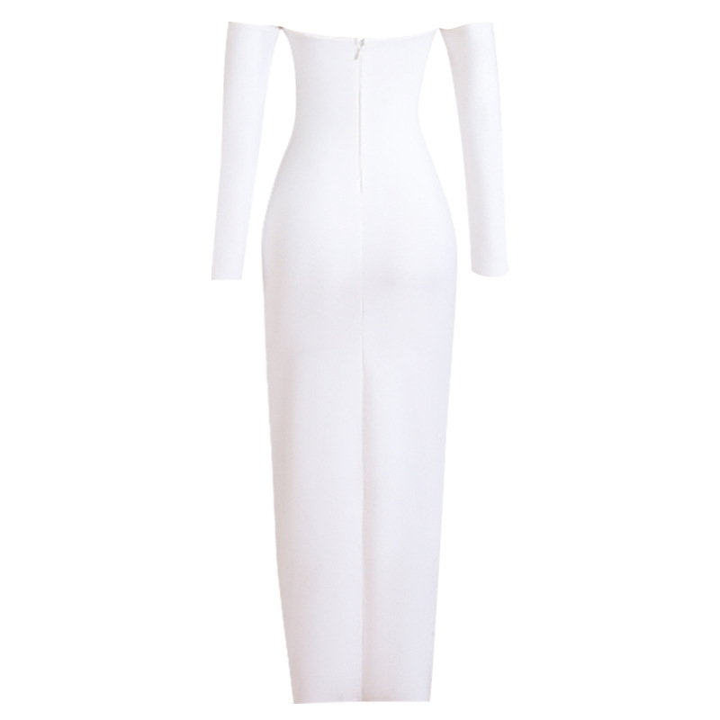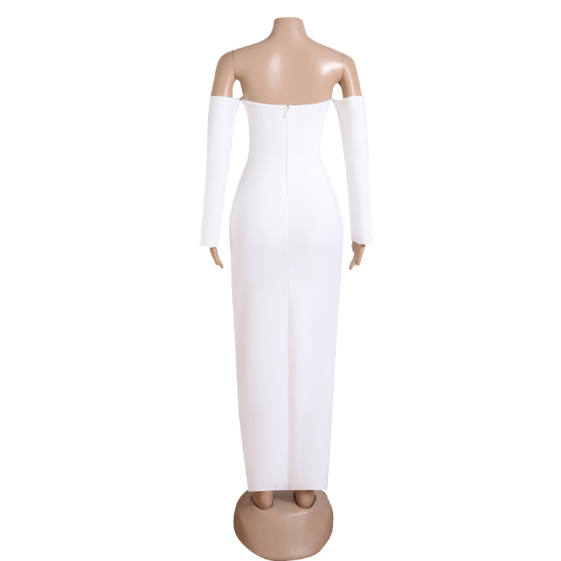 Sheath Dress off Shoulder Long Sleeve Tube Top Dress High Split Maxi Dress