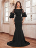 Simple Prom Evening Dress Crew Neck Long Sleeve Elegant Party Fishtail Dress Black Evening Dress
