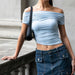 Slash Neck Bodycon Top �Short Sleeve Solid Color Tee