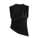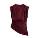 Sleeveless Cropped Top Pleated Round Neck Vest T-Shirt