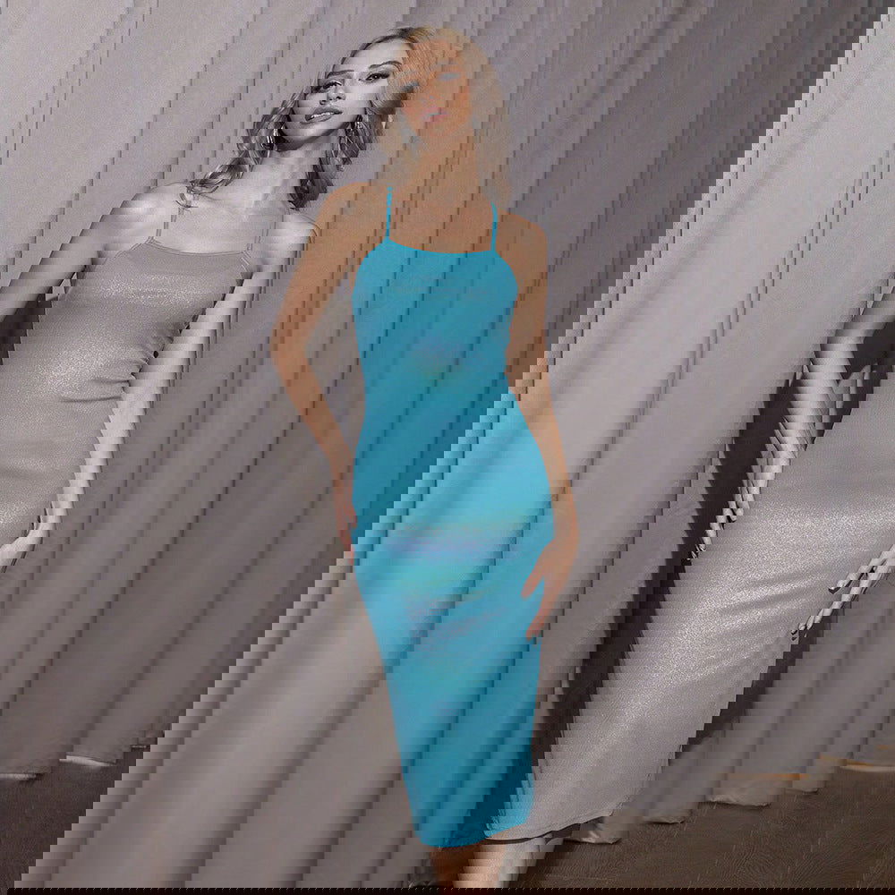 Slim Fit Backless Sequined Gradient Color Halter Dress