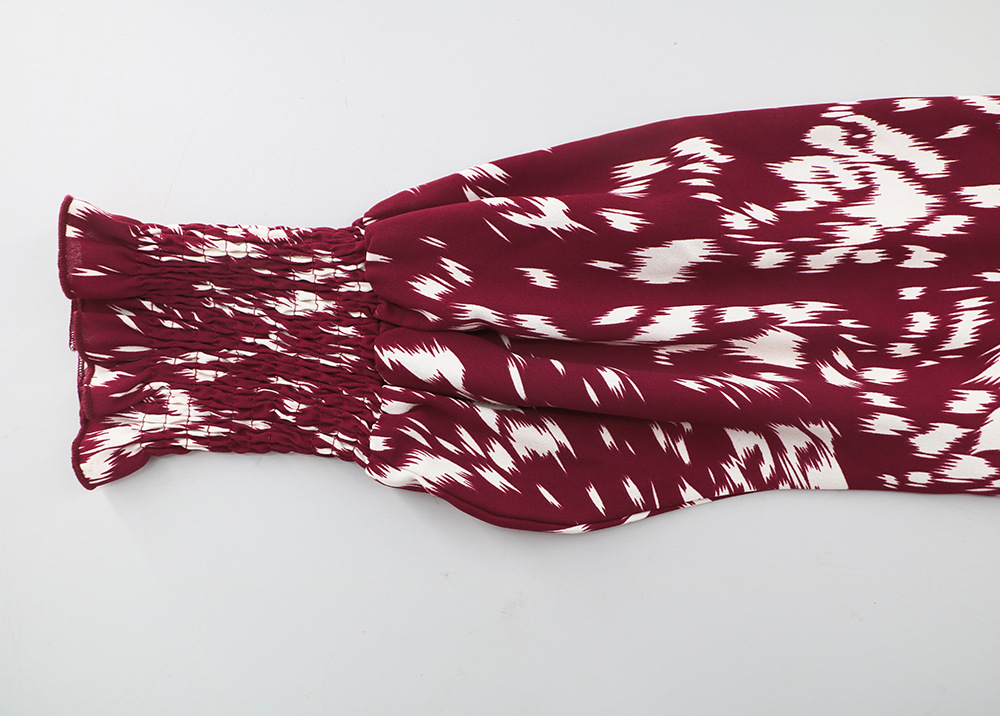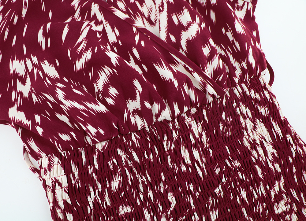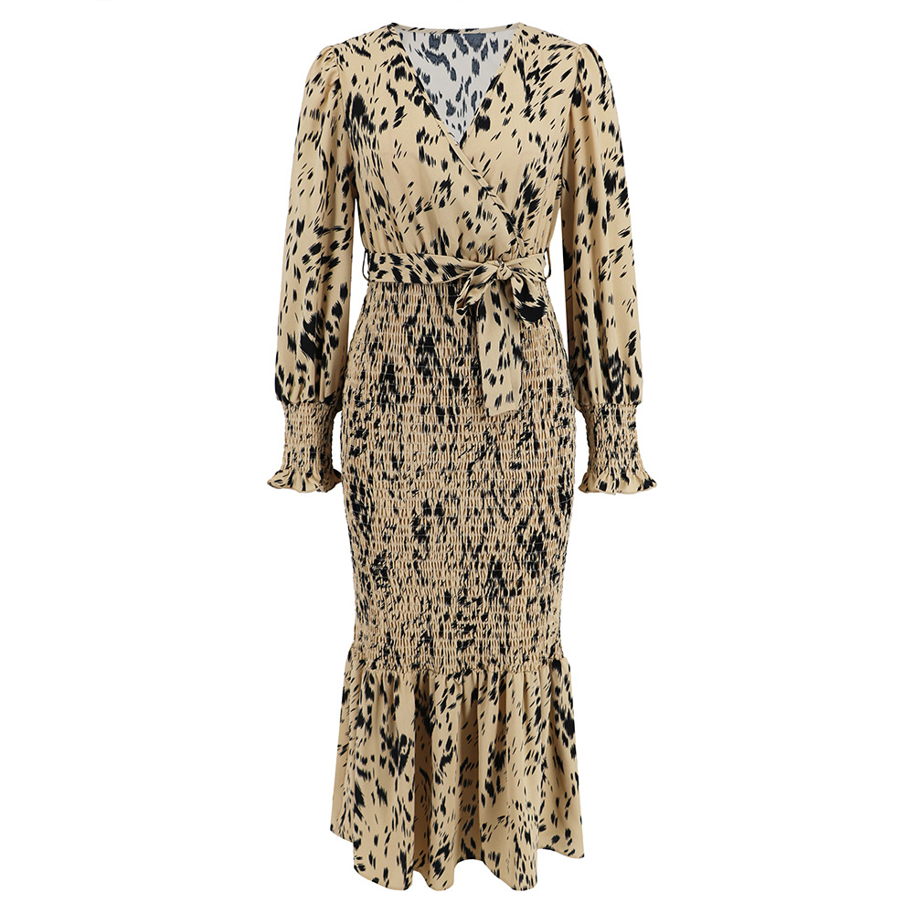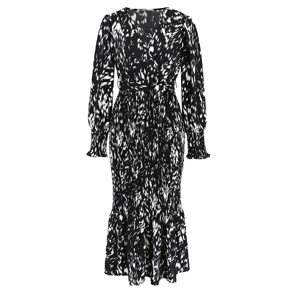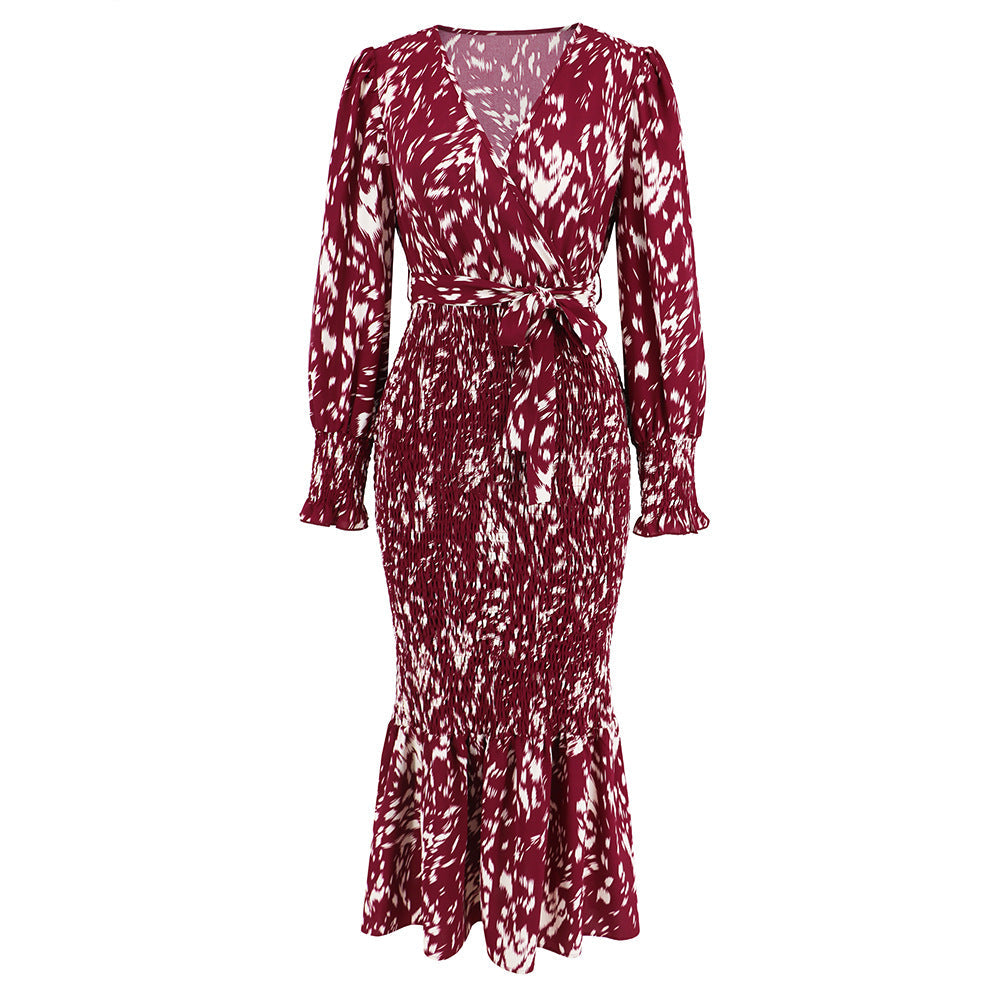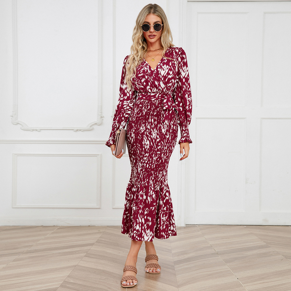 Slim Fit Elegant V Neck Belt Printed Dress Long Fish Tail Dress Popular