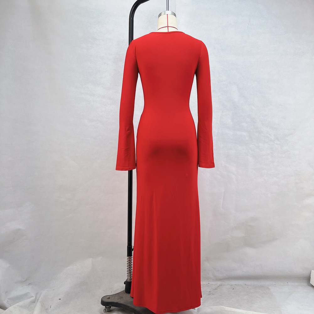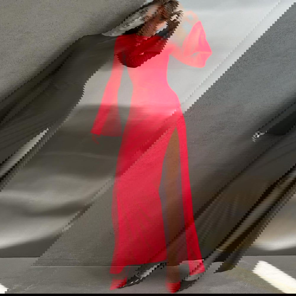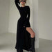 Slim Fit Graceful Long Sleeve Split Maxi Dress