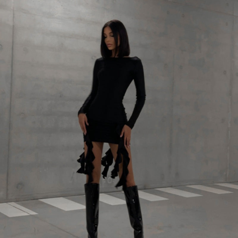 Slim Fit round Neck Long Sleeves Irregular Asymmetric Dress Short Sleeve