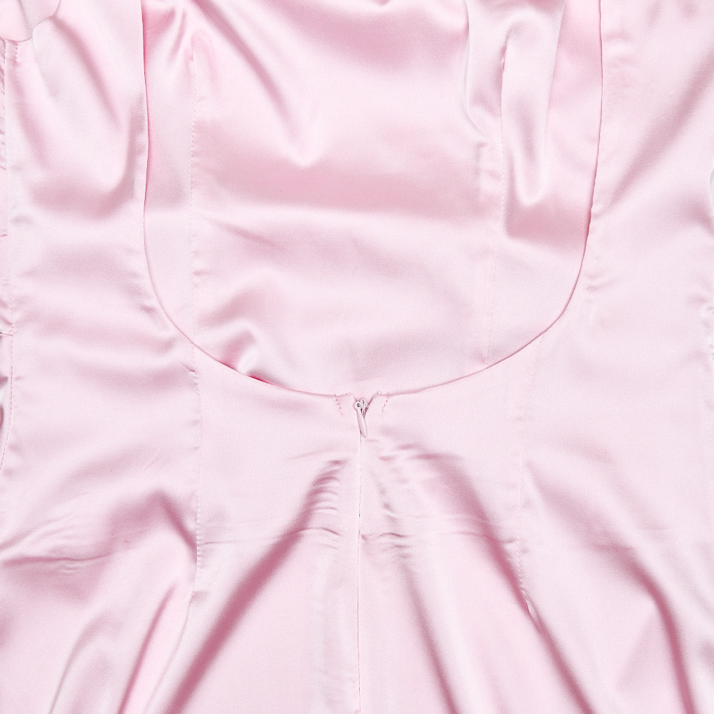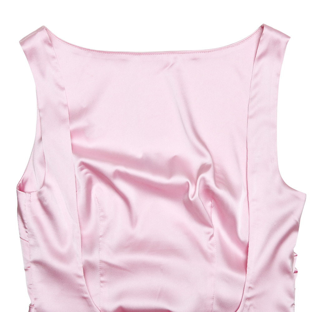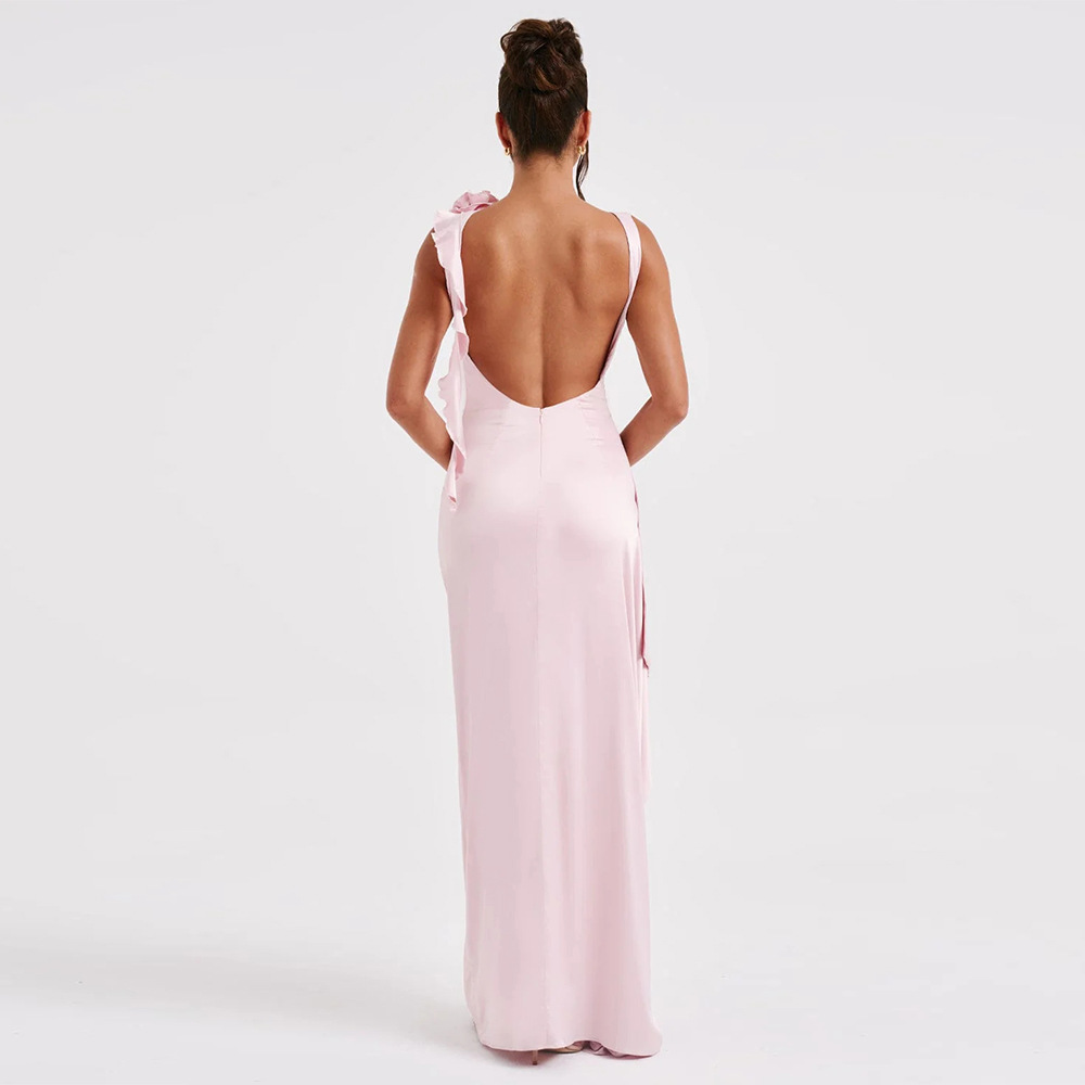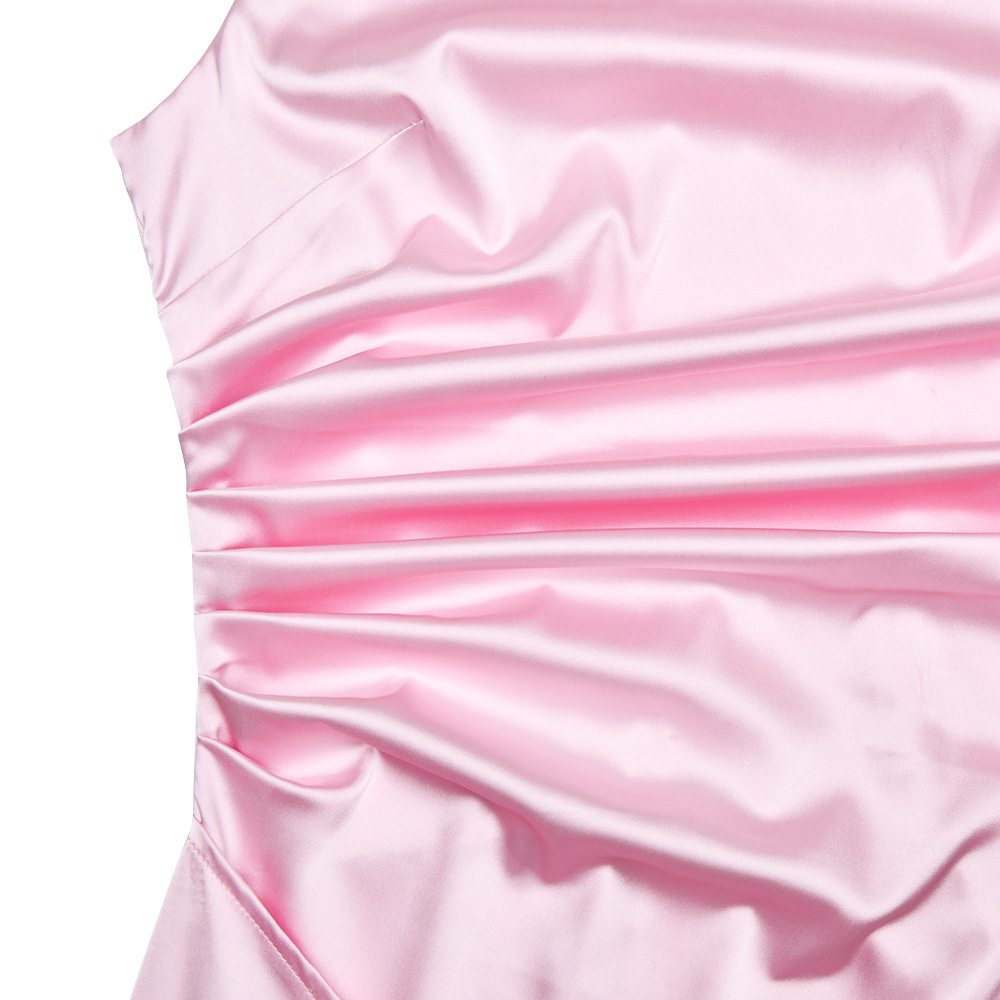 Slim Sleeveless Backless Satin Dress Pleated High Slit Dress