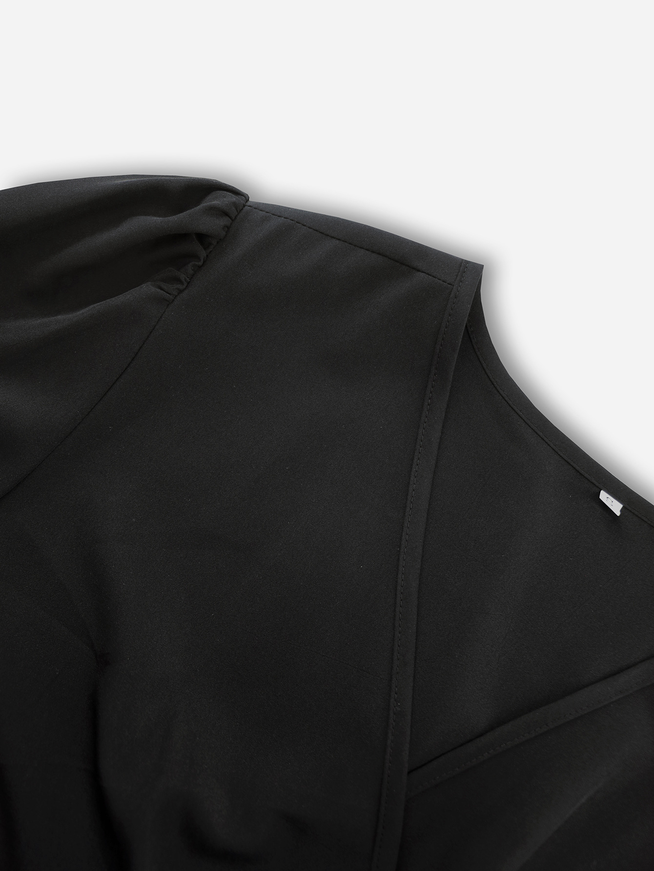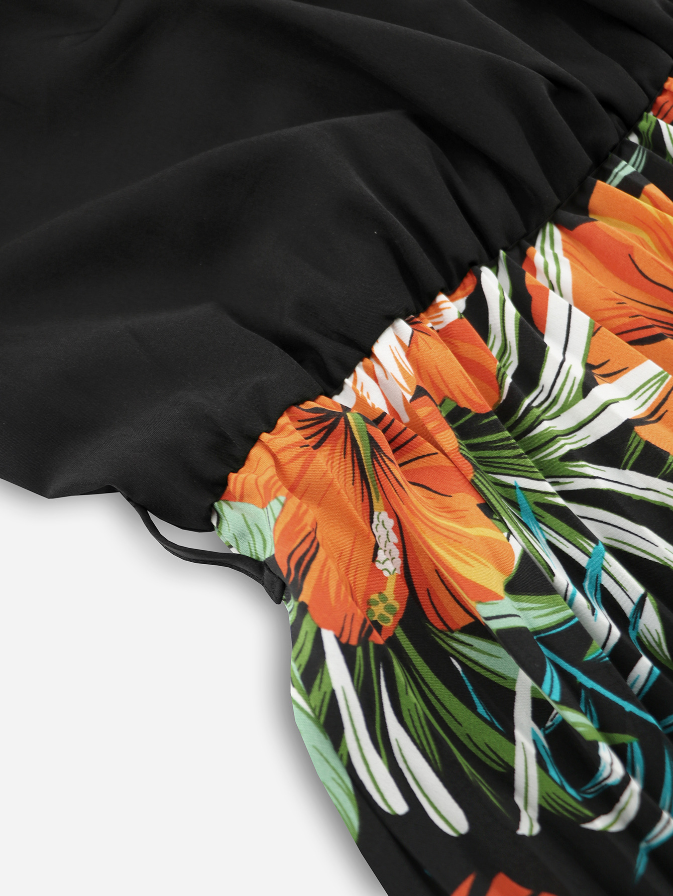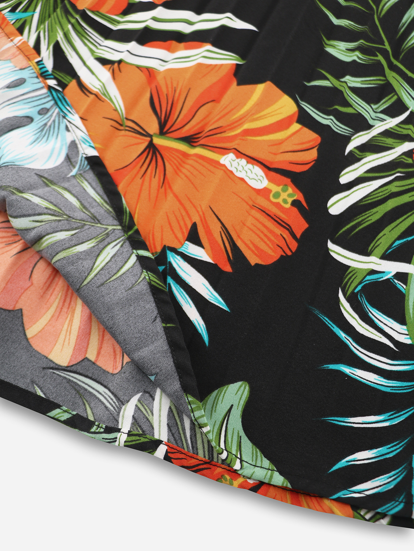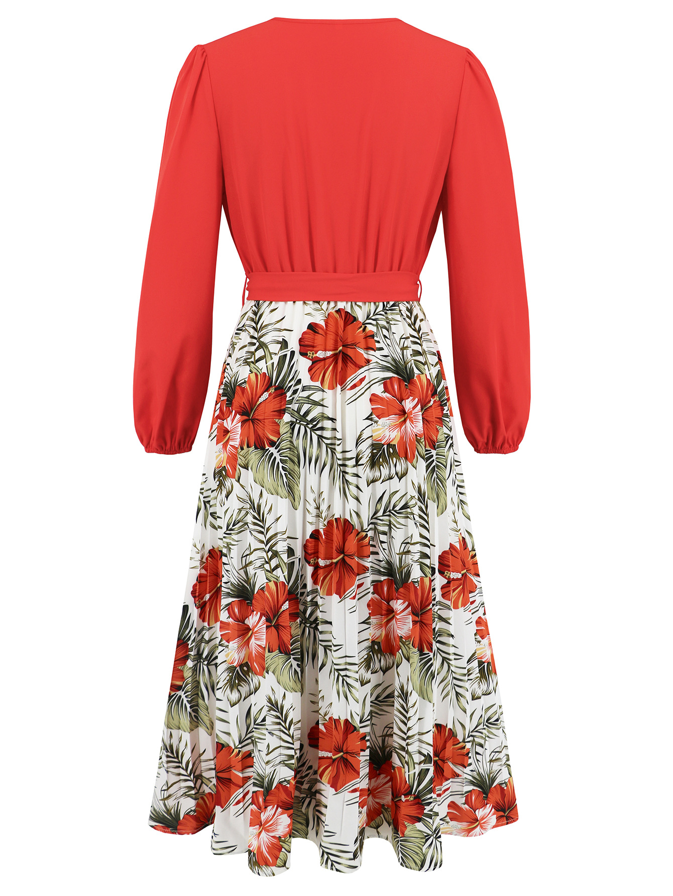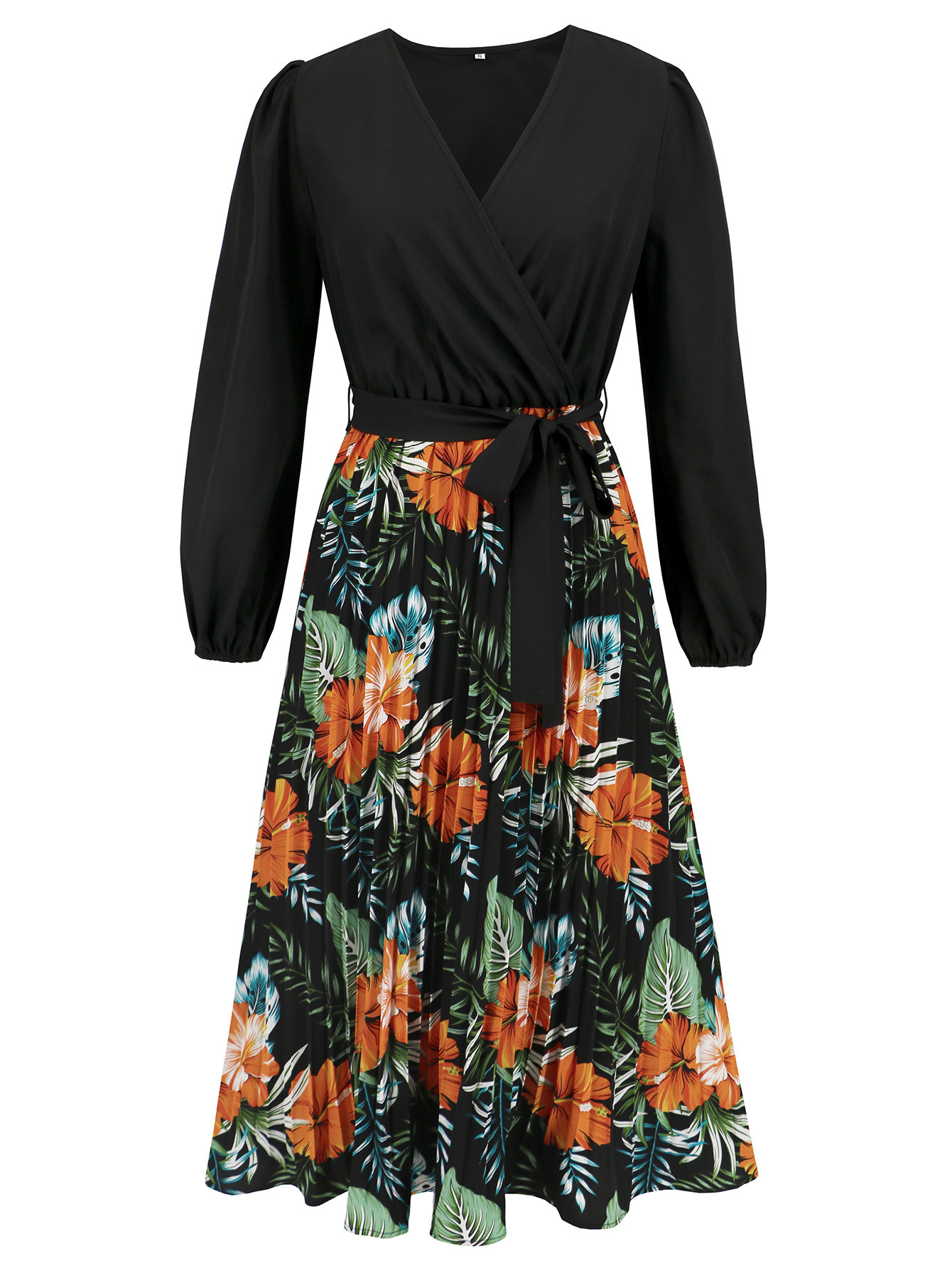 Slim V Neck Printed Dress Long Sleeve Pleated Dress