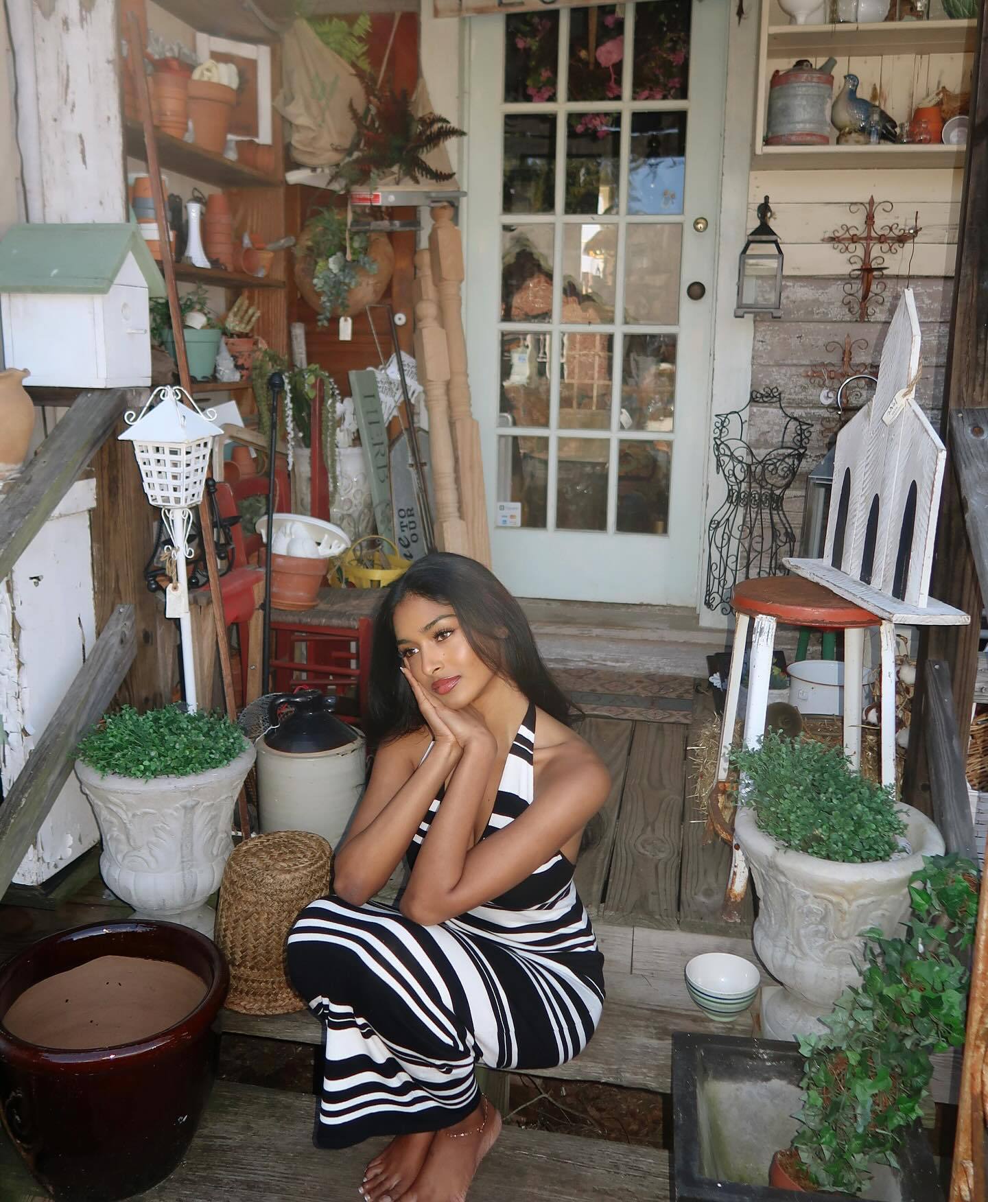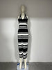 Slimming Sleeveless Halter Backless Striped Knitted Dress Casual Waist Tight Beach Bohemian