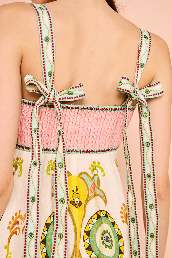 Sling Graffiti Printing Sleeveless Bow Swing Cotton Linen Dress