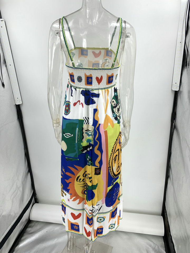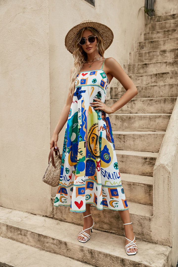 Sling Graffiti Printing Sleeveless Swing Dress Amplified craft