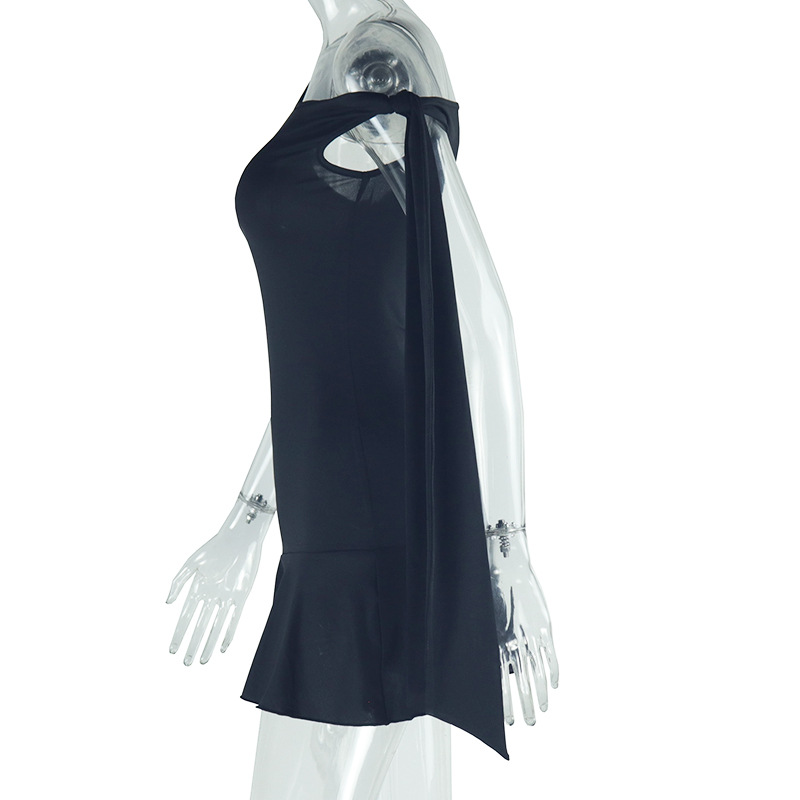 Solid Color Dress Diagonal Collar off Shoulder Sleeveless Irregular Asymmetric Dress