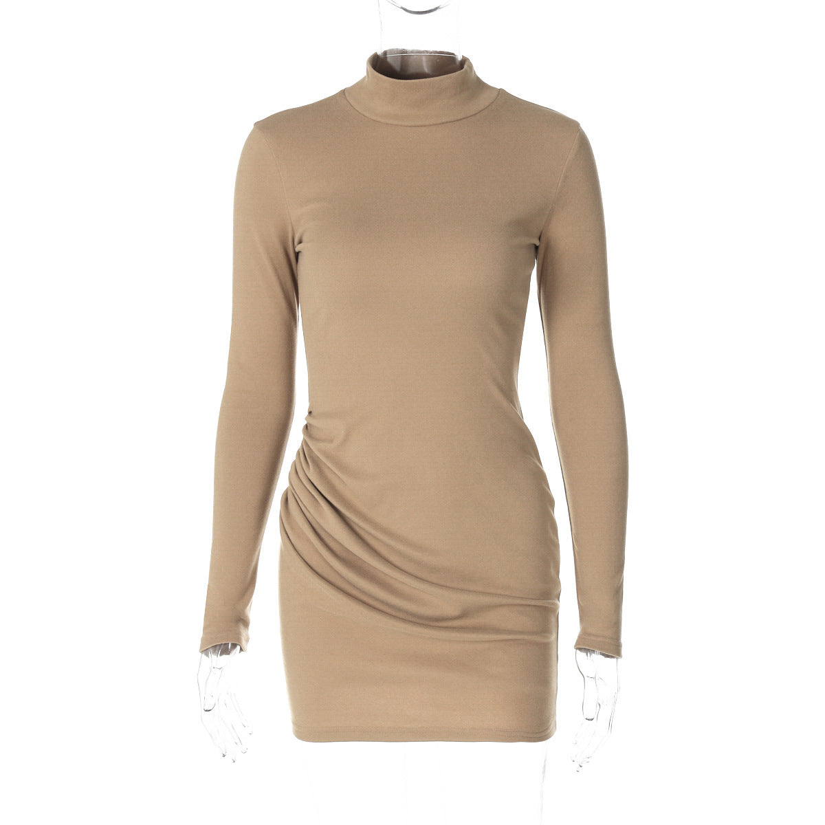 Solid Color Half Collar Waist Controlled Slimming Hip Bag Dress