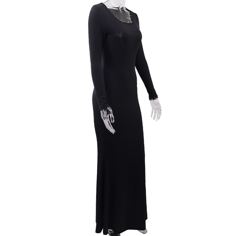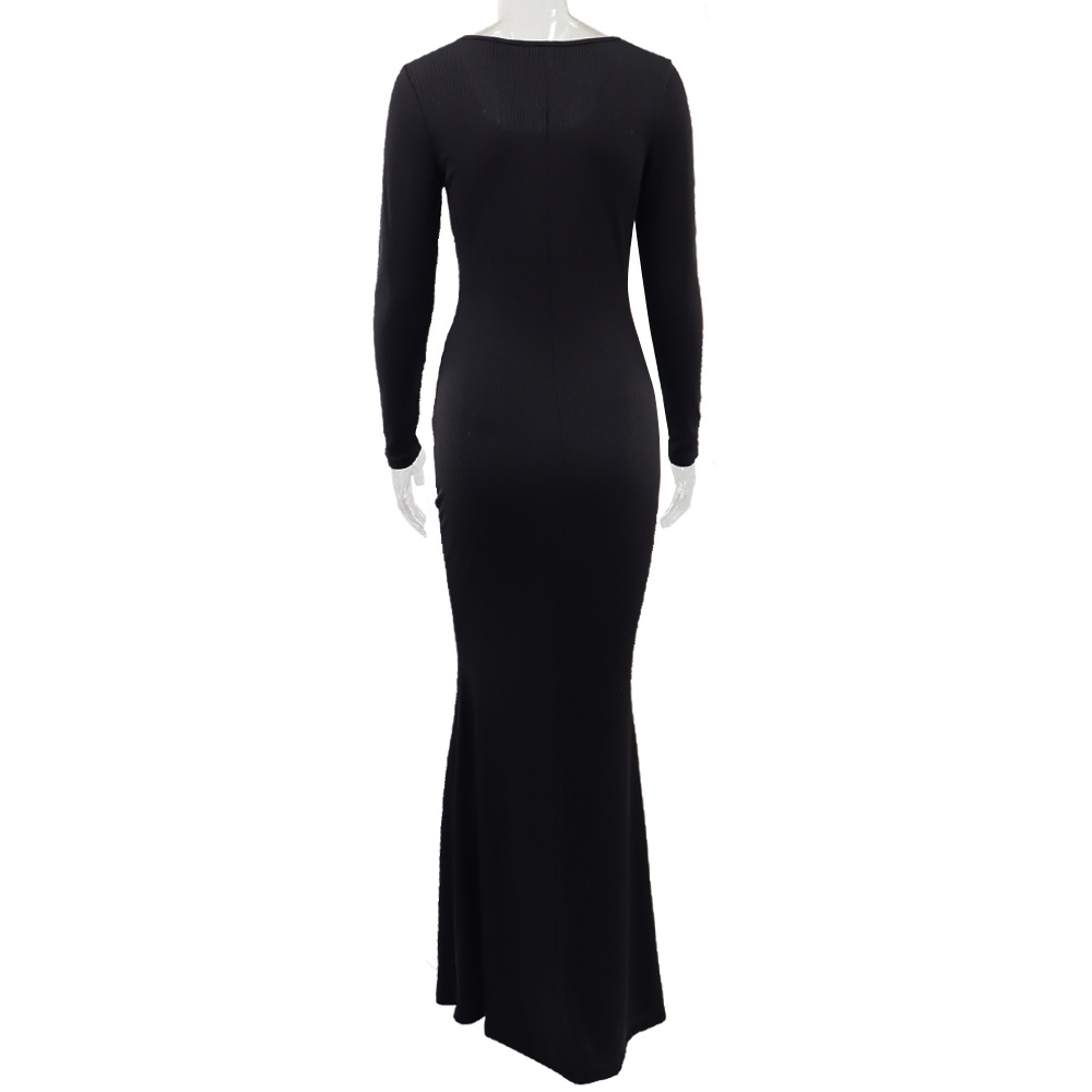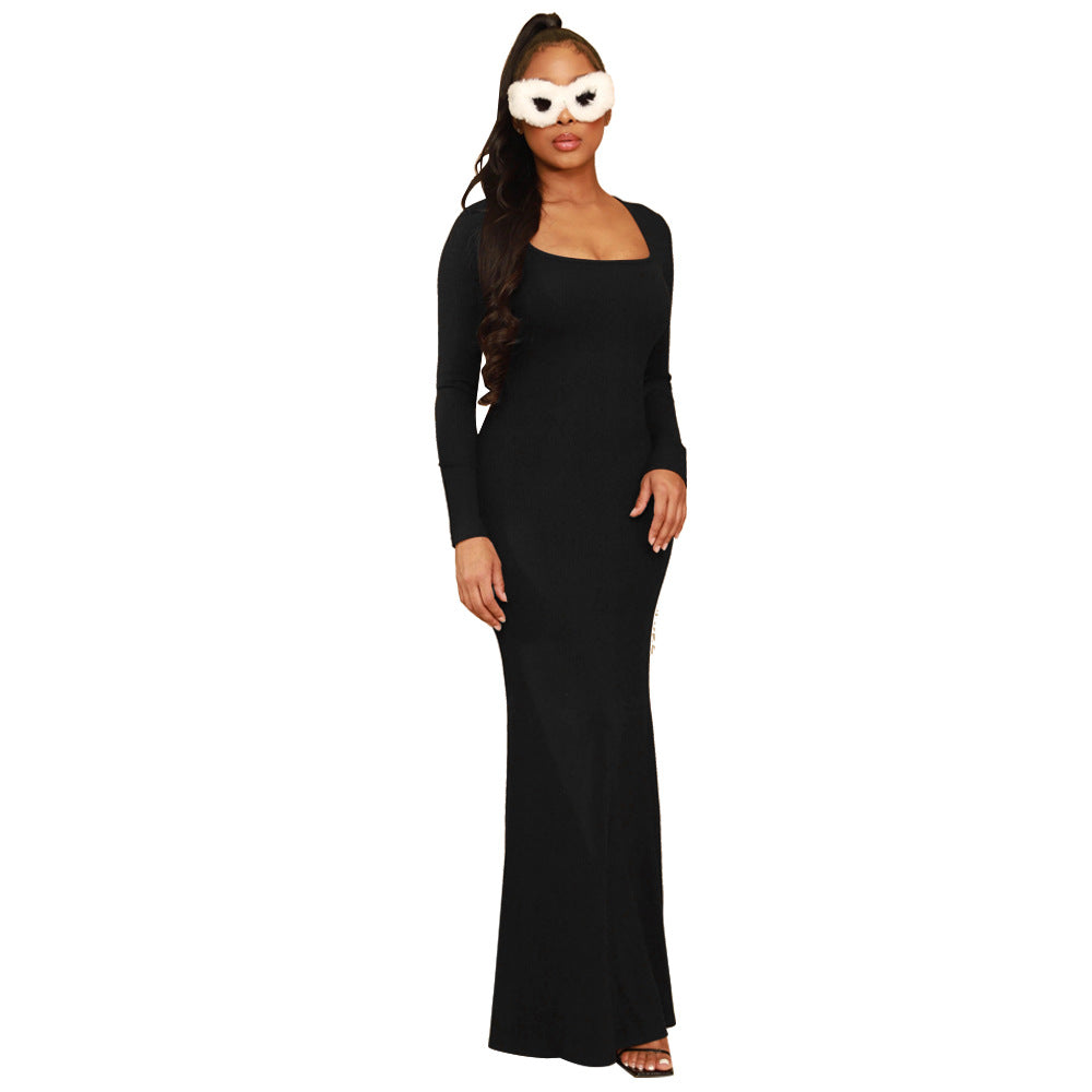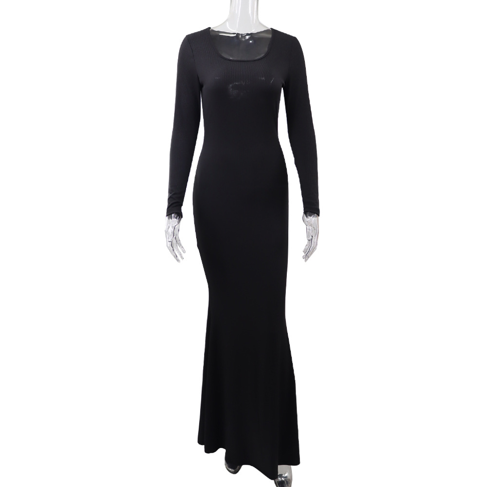 Solid Color High Waist Slim Mop Dinner Fishtail Dress