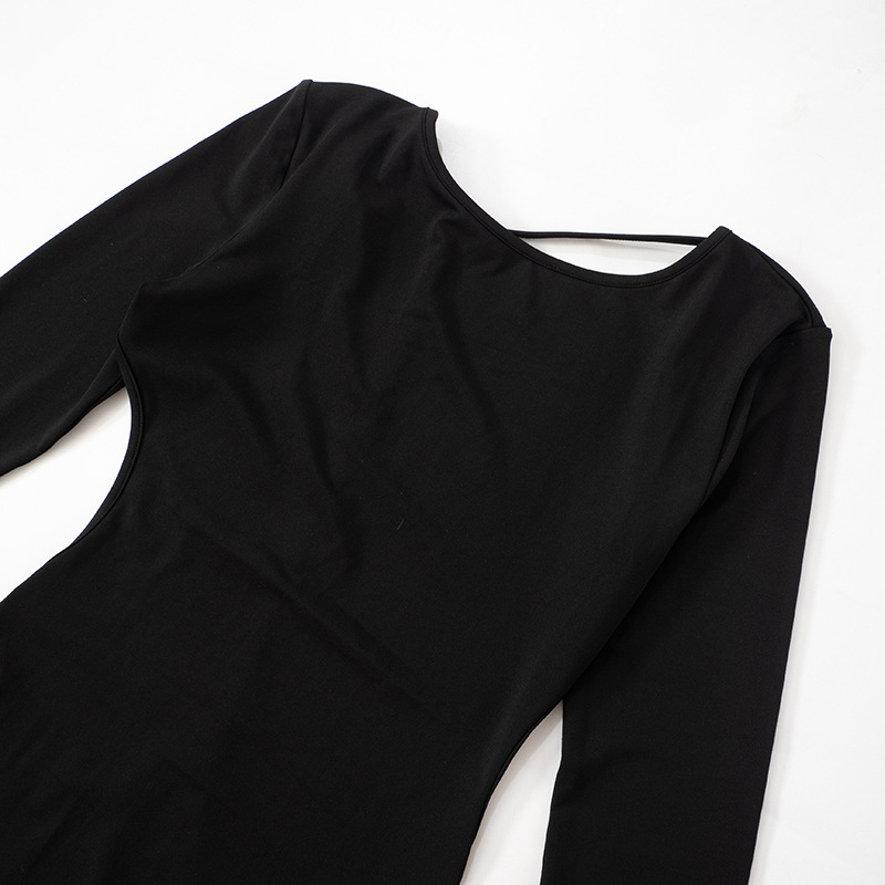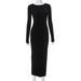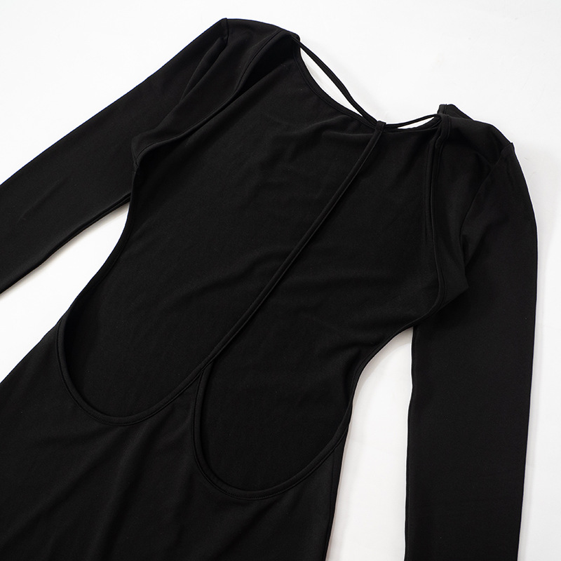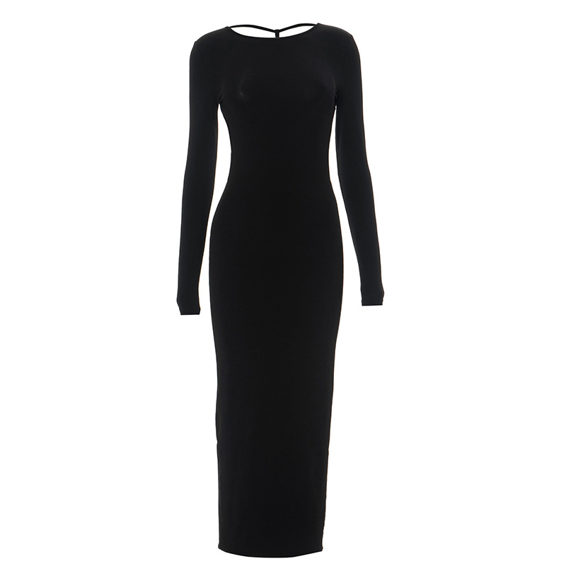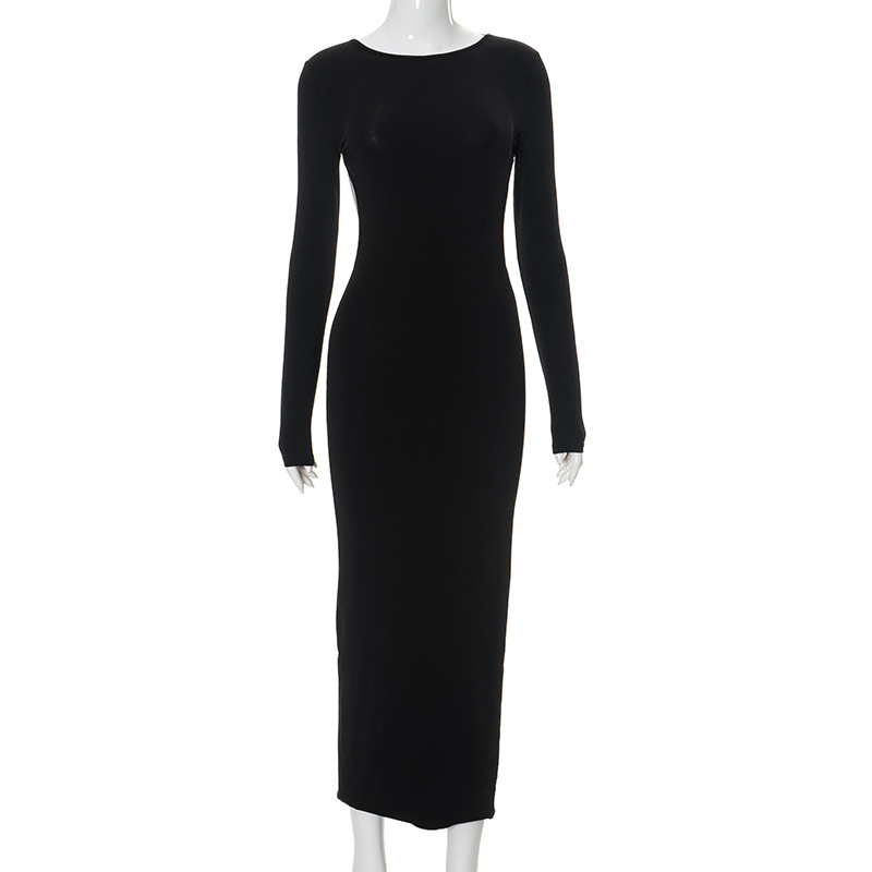 Solid Color Hip Round Neck Backless Long Sleeves Dress