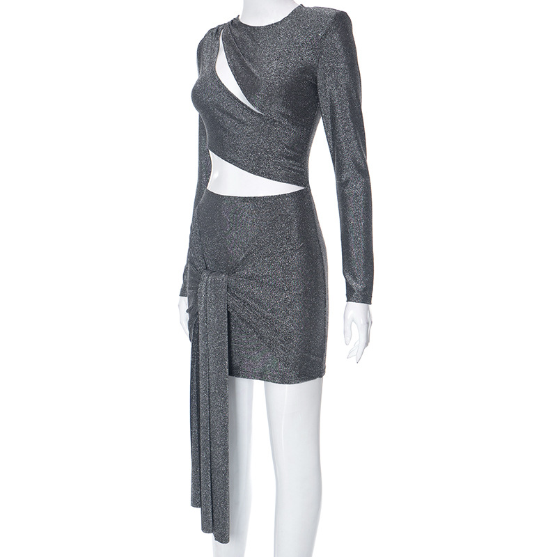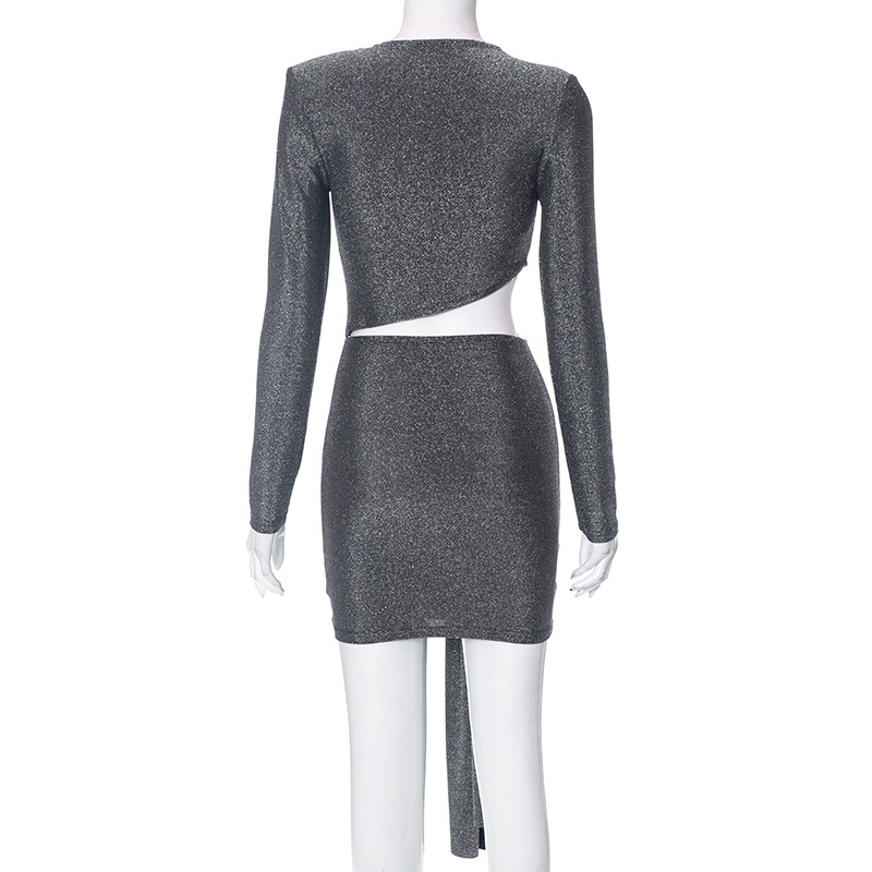 Solid Color Long Sleeve Hollow Out Cutout Dress