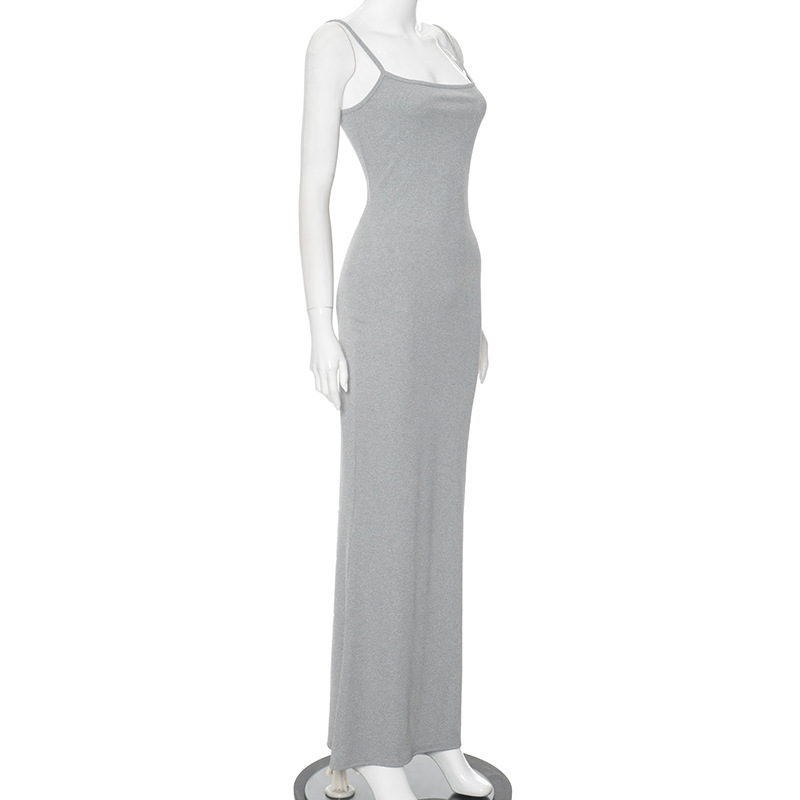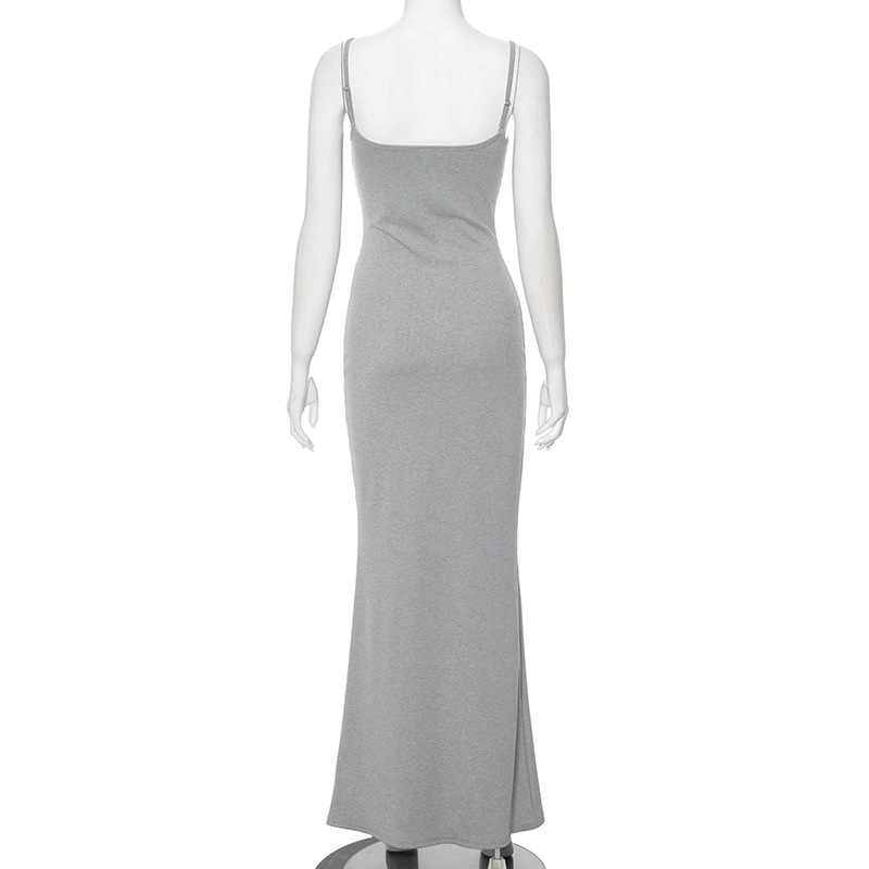 Solid Color Low Cut Slim Fit High Waist Slimming Sling Fishtail Dress