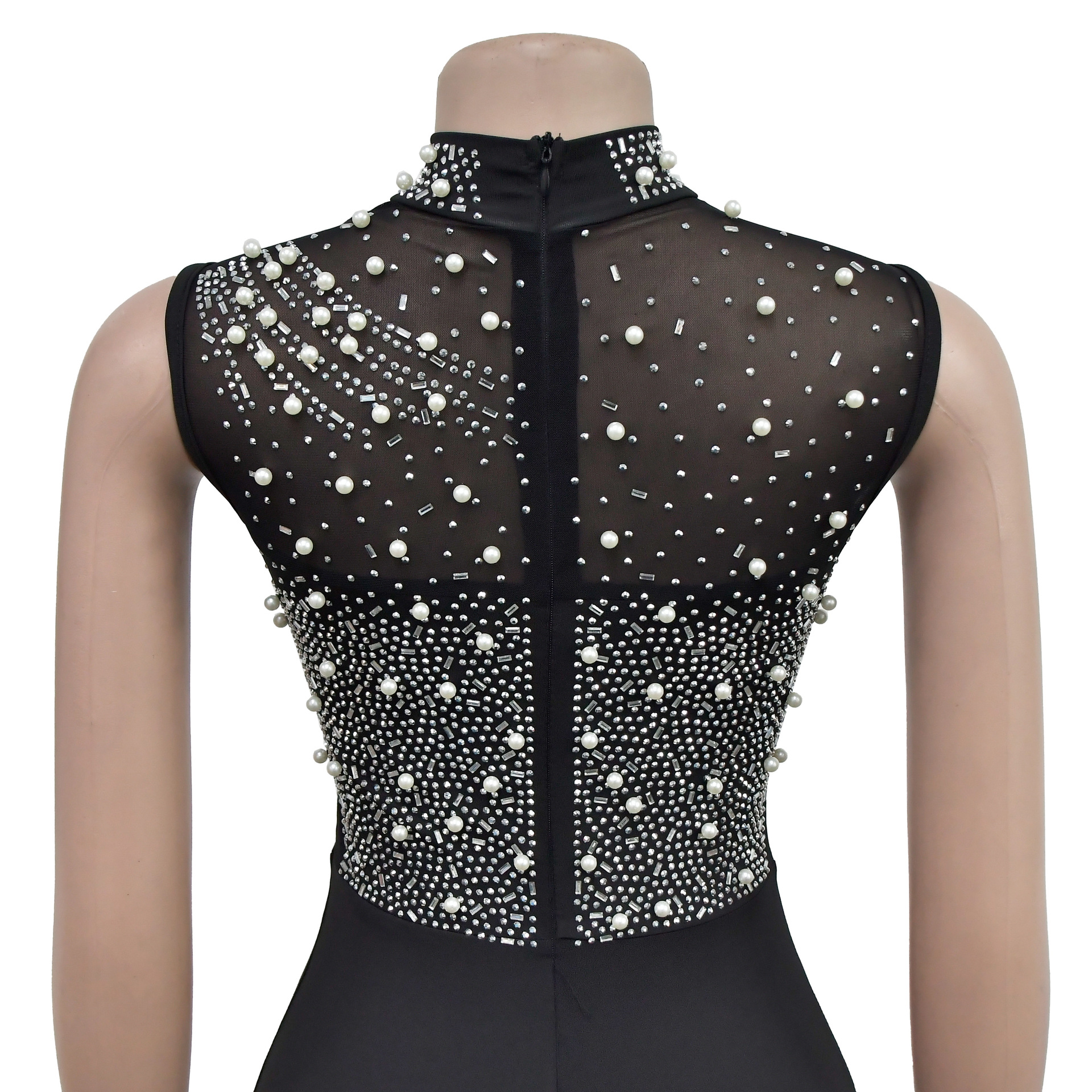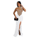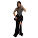 Solid Color Mesh Rhinestone Sleeveless Maxi Dress