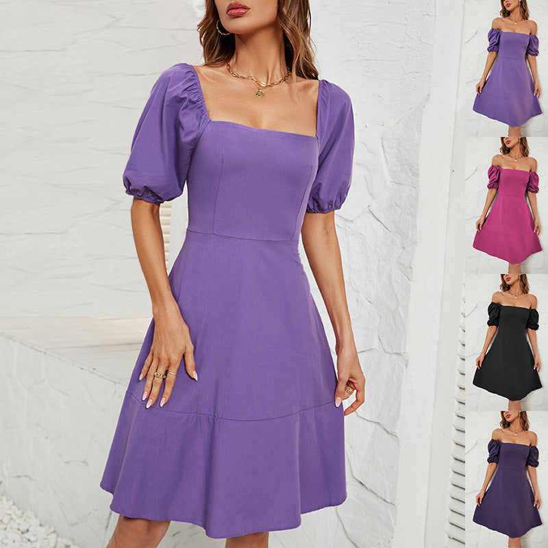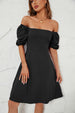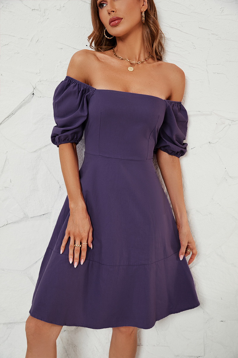 Solid Color off Neck Puff Sleeve Dress for