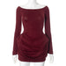 Solid Color off Shoulder Long Sleeve High Waist Short Dress