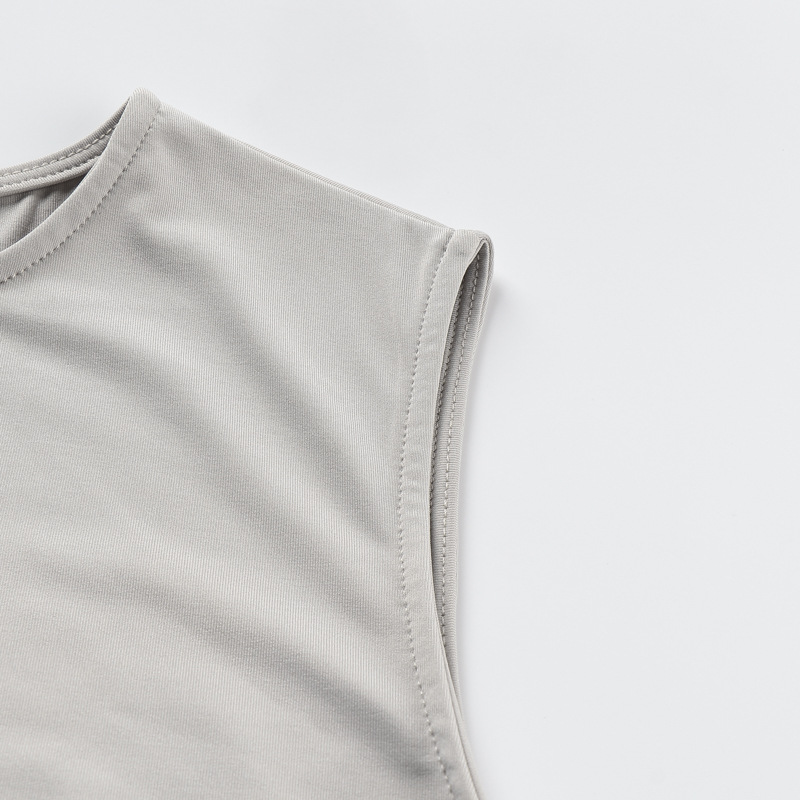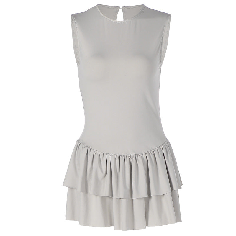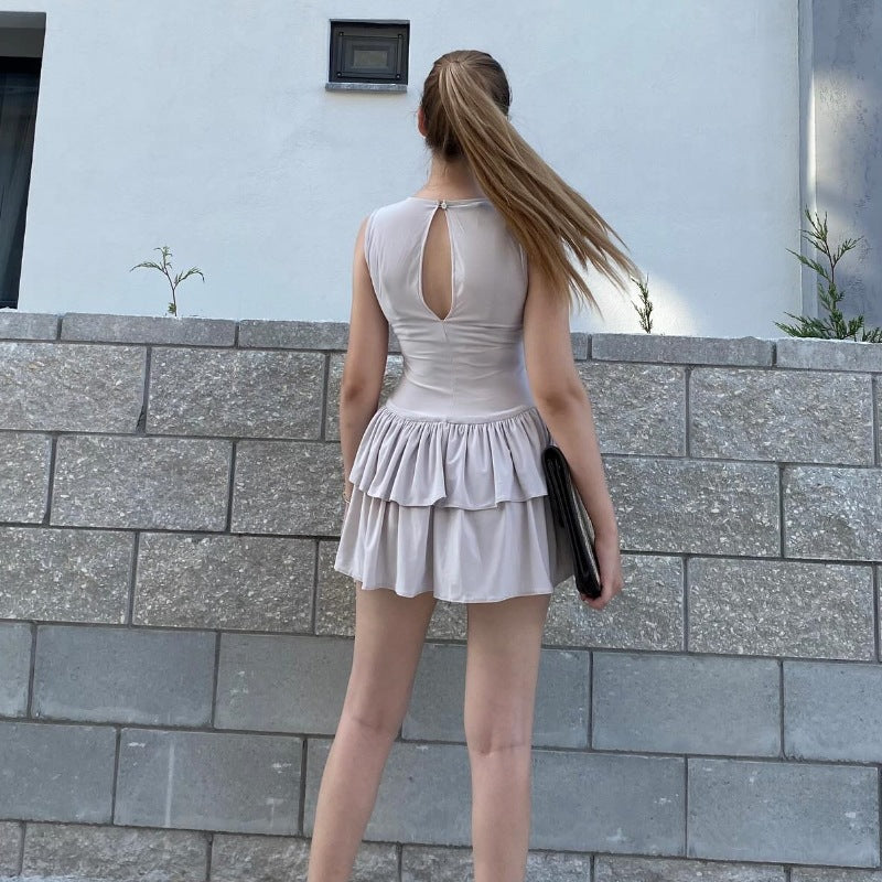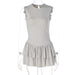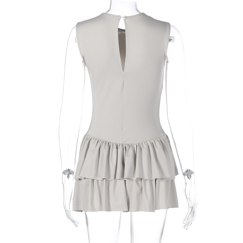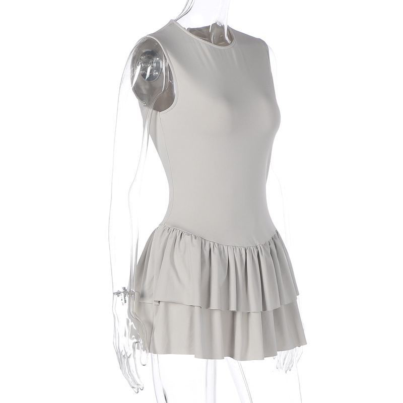 Solid Color round Neck Sleeveless Slim Pleated Short Dress