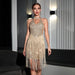 Solid Color Sequ Halter Cut-out Tassel Cocktail Party Dress Midi Dress Dress