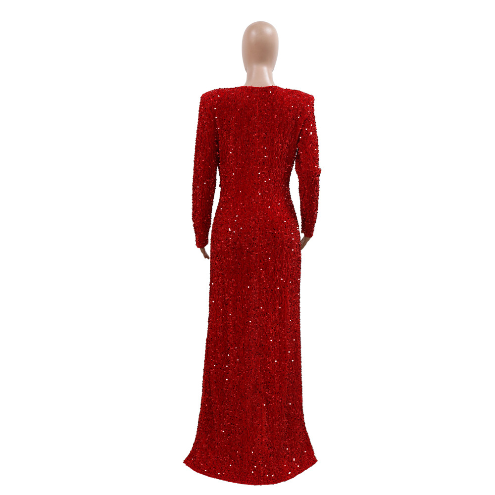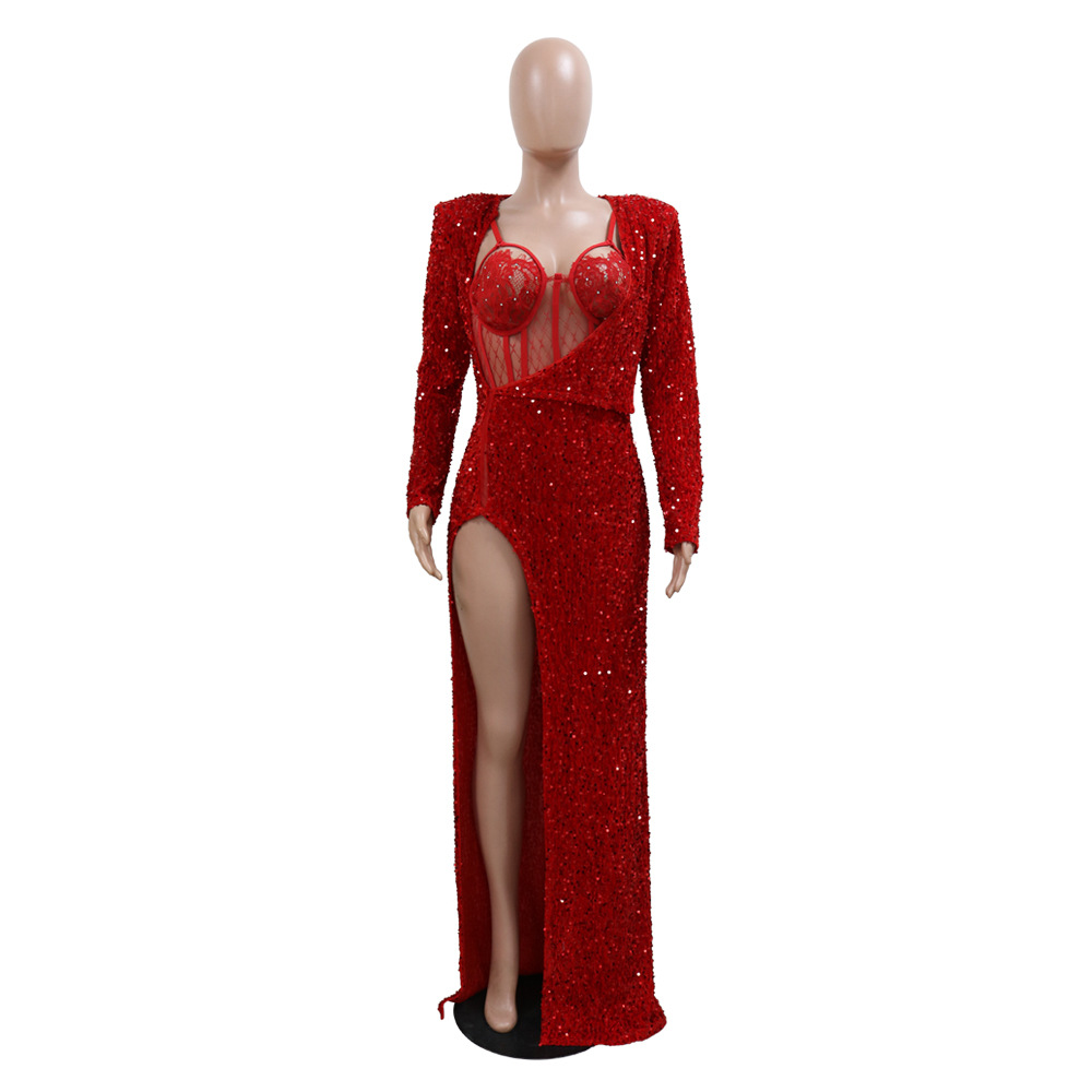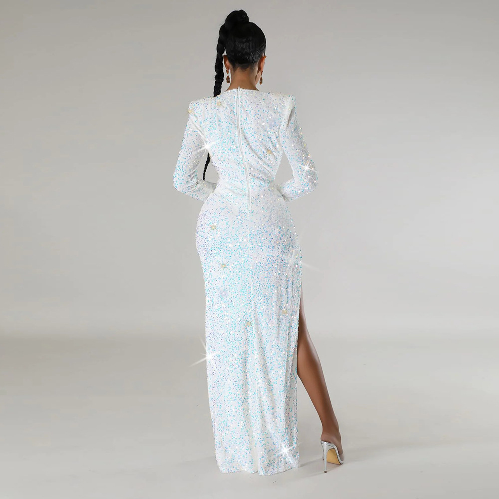 Solid Color Sequ Slit Maxi Dress Including Jumpsuit Two Piece Set Dress