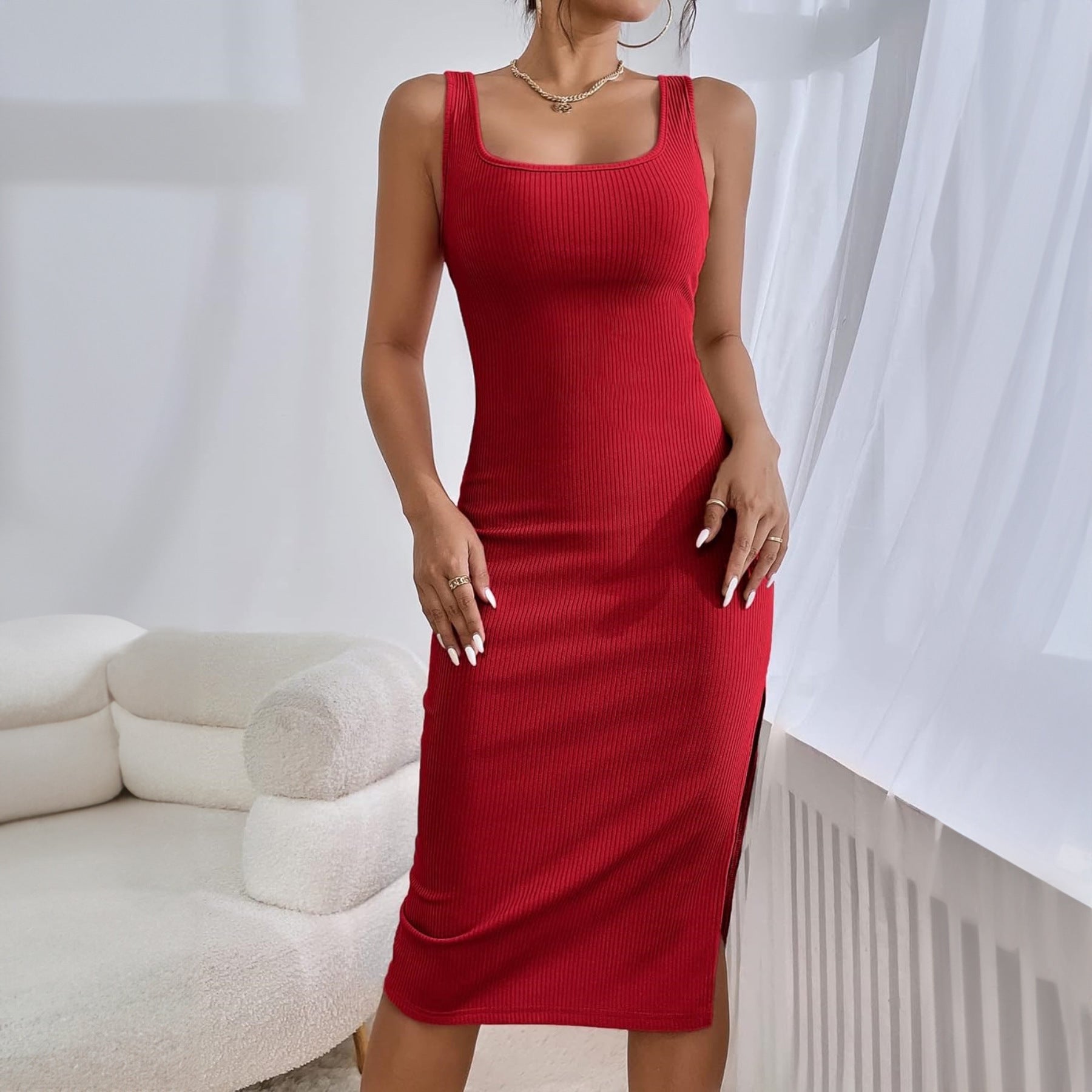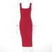 Solid Color Slim Fit Slit Square Collar Hip Bag Cami Dress