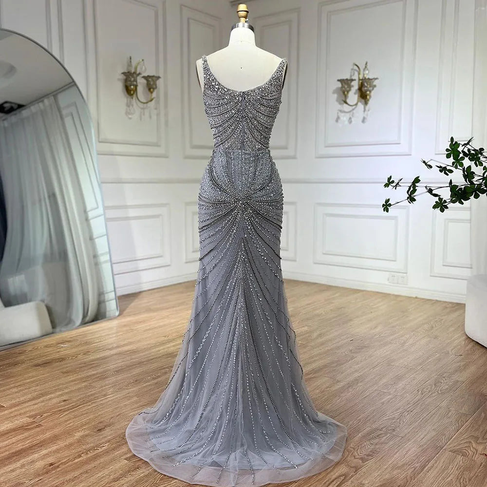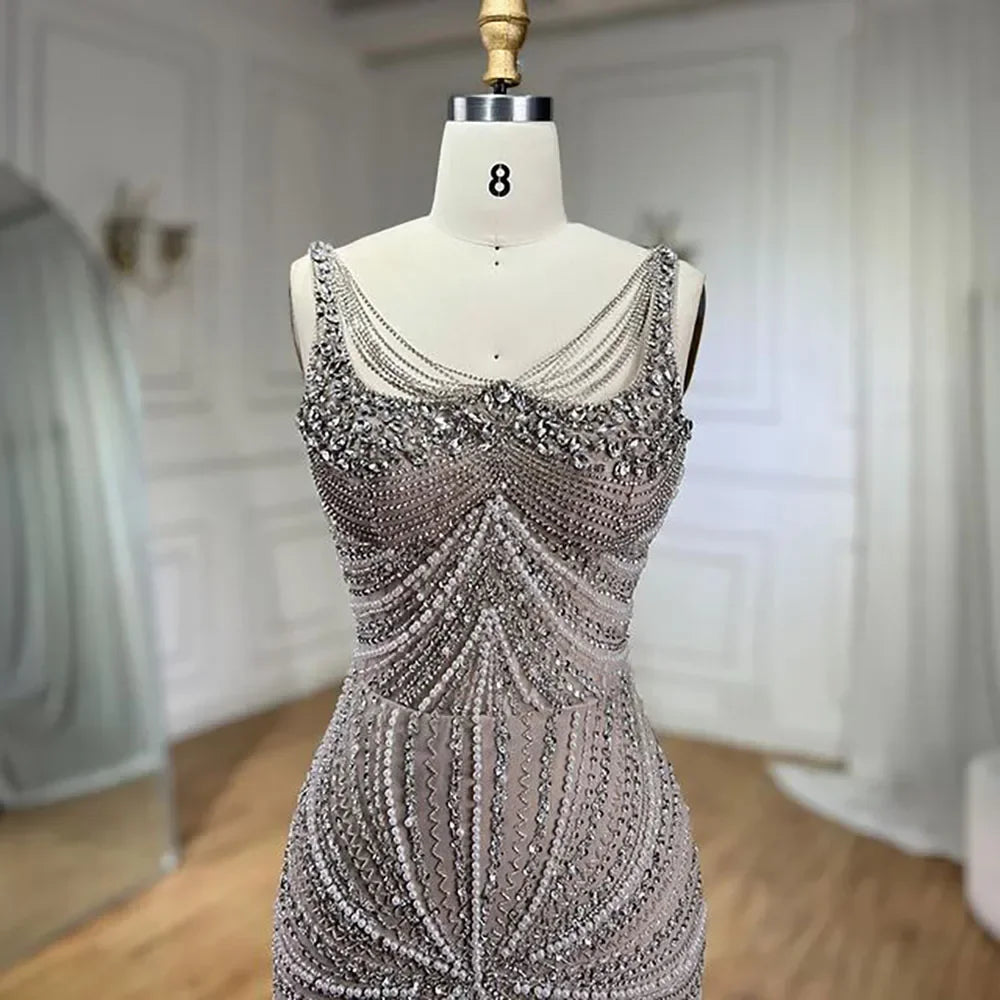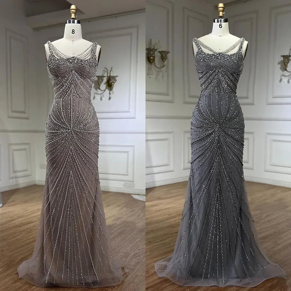 Pearl Beaded Spaghetti Straps Mermaid Evening Gown