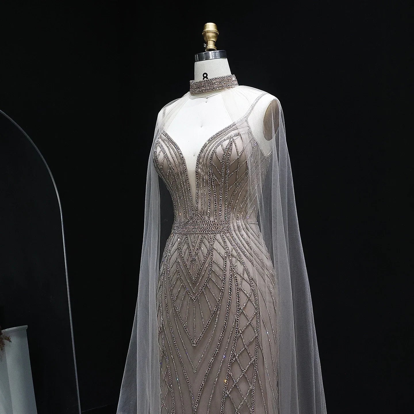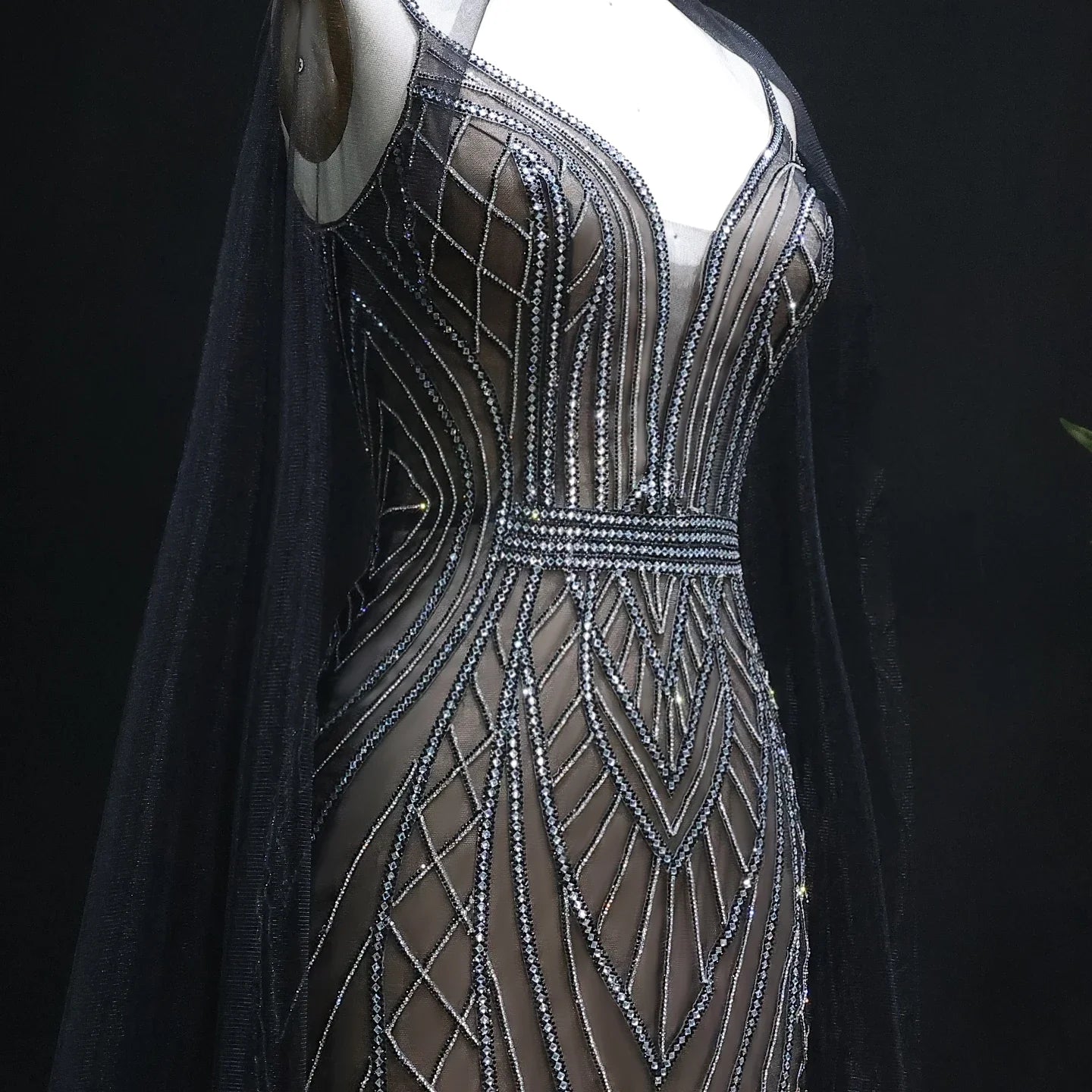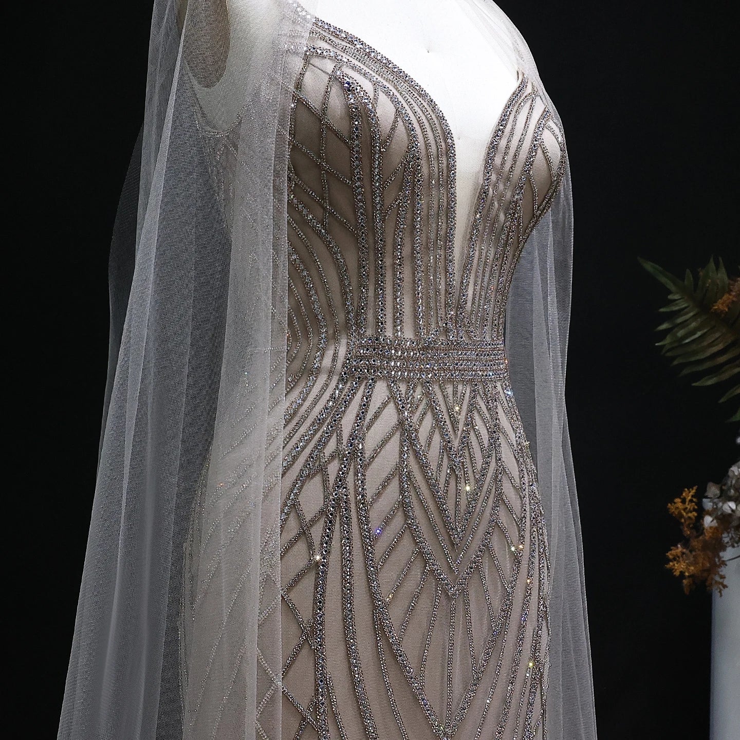 Sparkle Crystal Tulle Evening Dress with Cape Sleeves