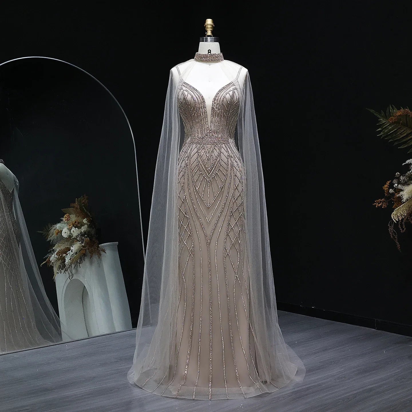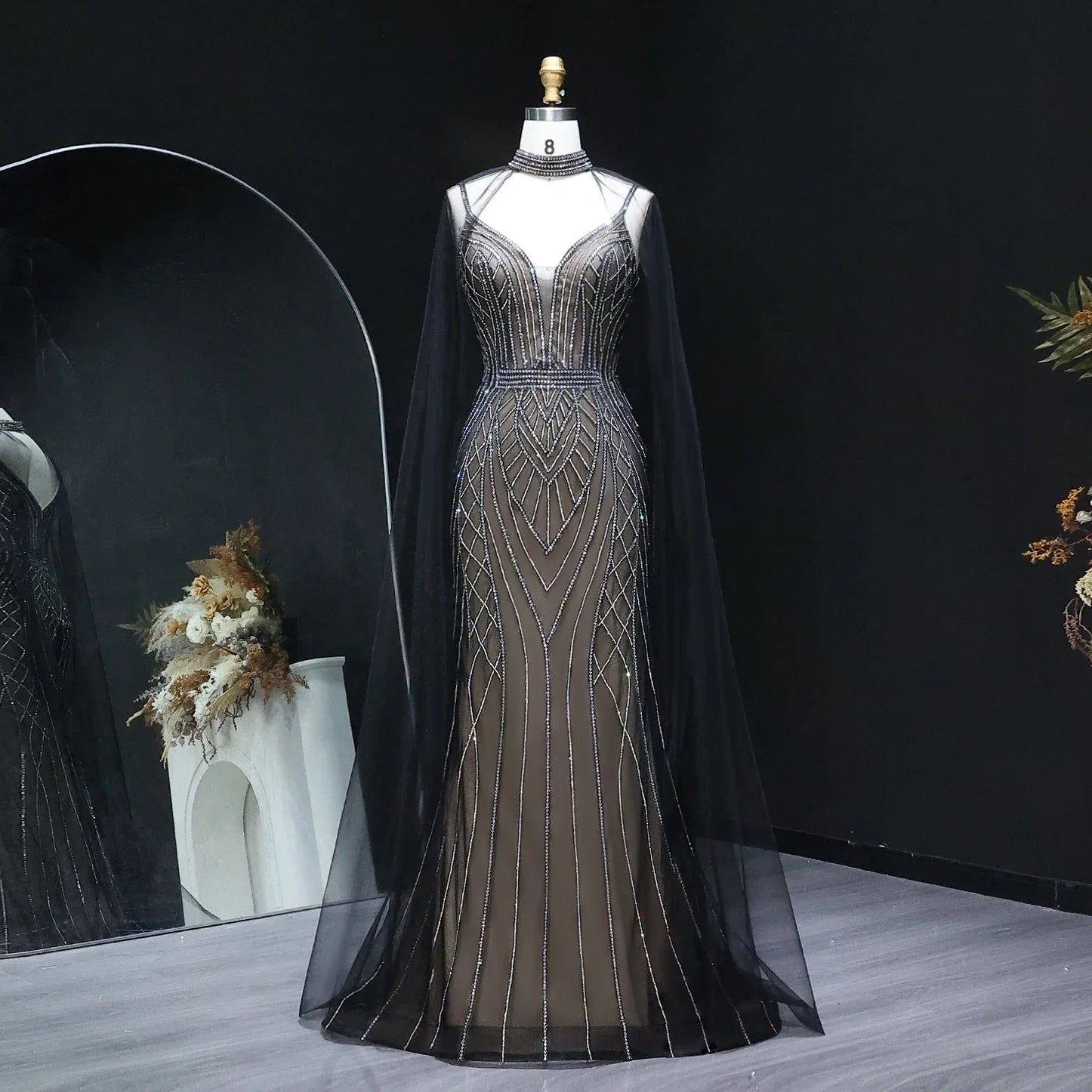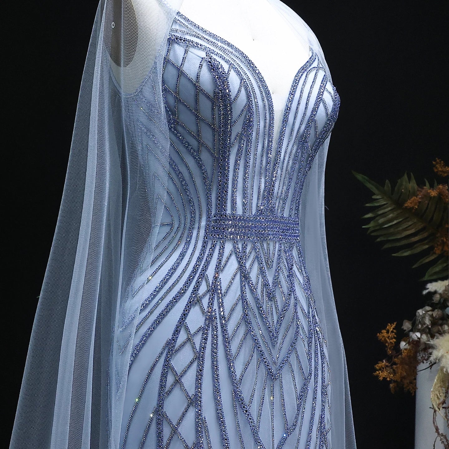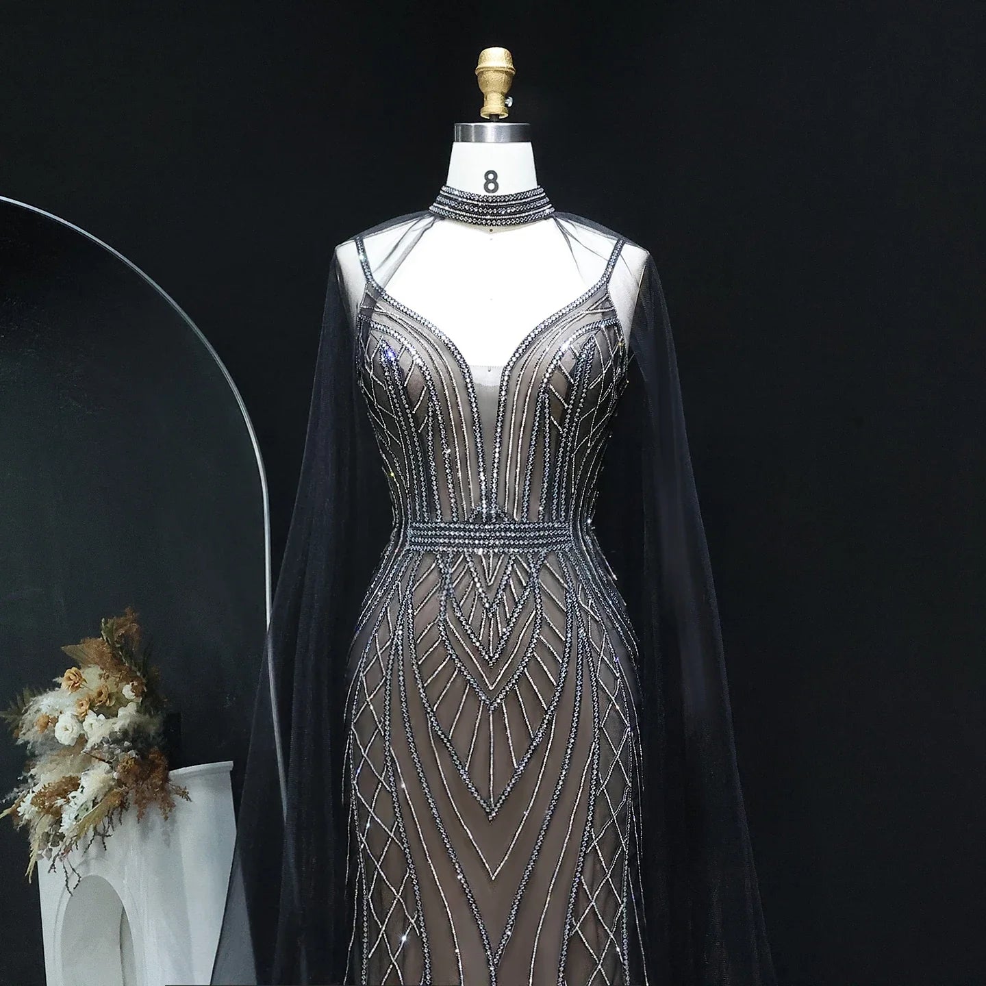 Sparkle Crystal Tulle Evening Dress with Cape Sleeves