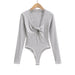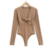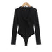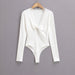Spliced Lace Bow V neck Jersey Long Sleeve Bodysuit