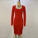 Square Collar Long Sleeve Solid Color Waist Tight Slimming Sheath Dress