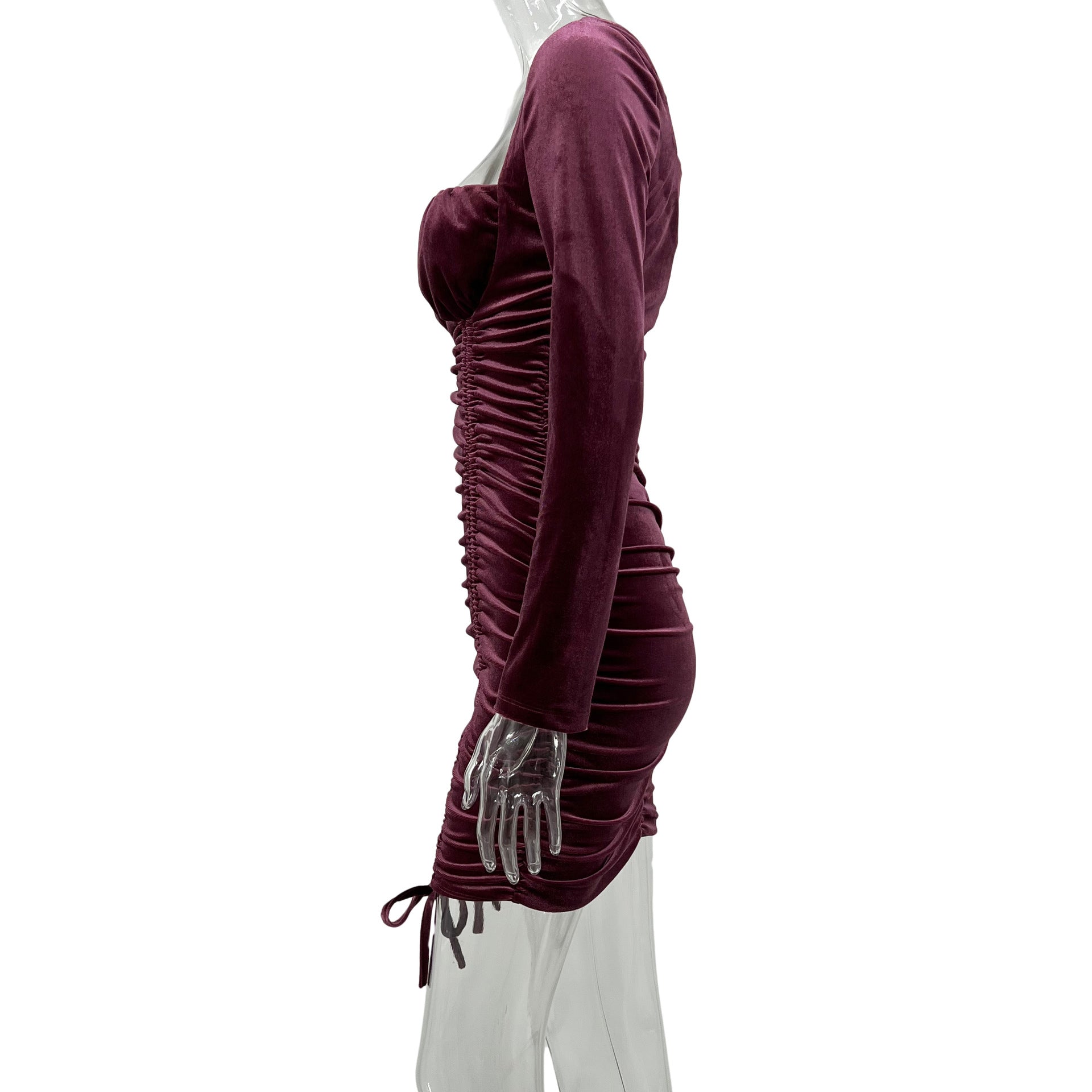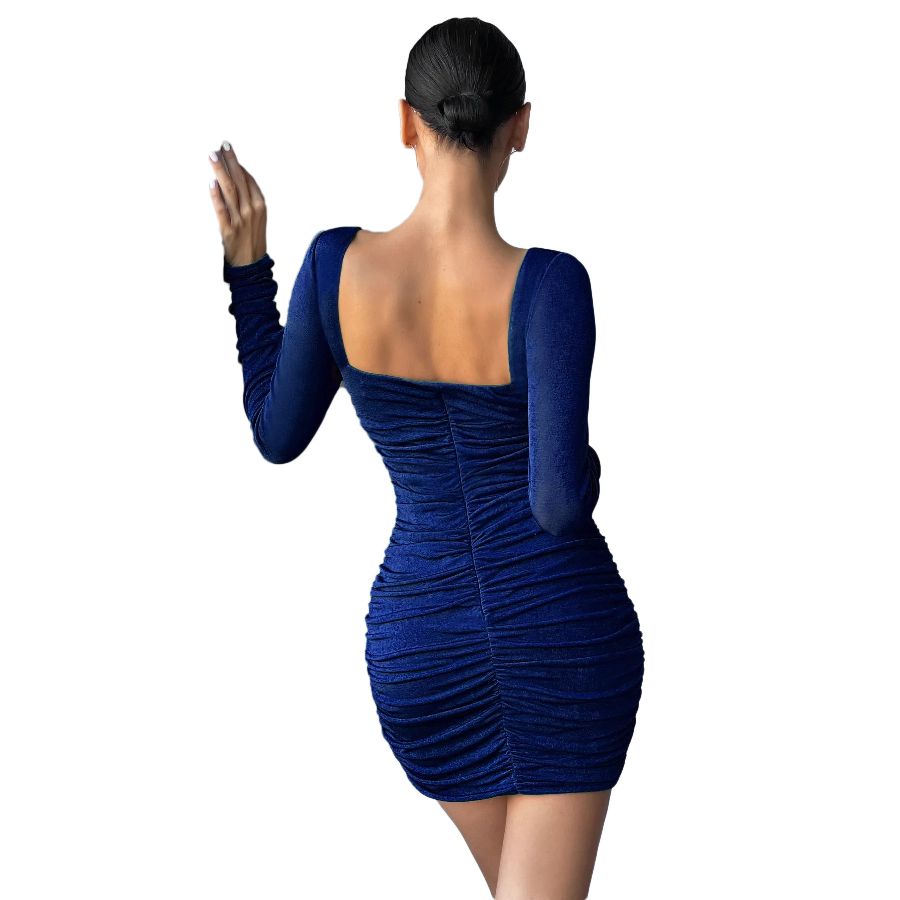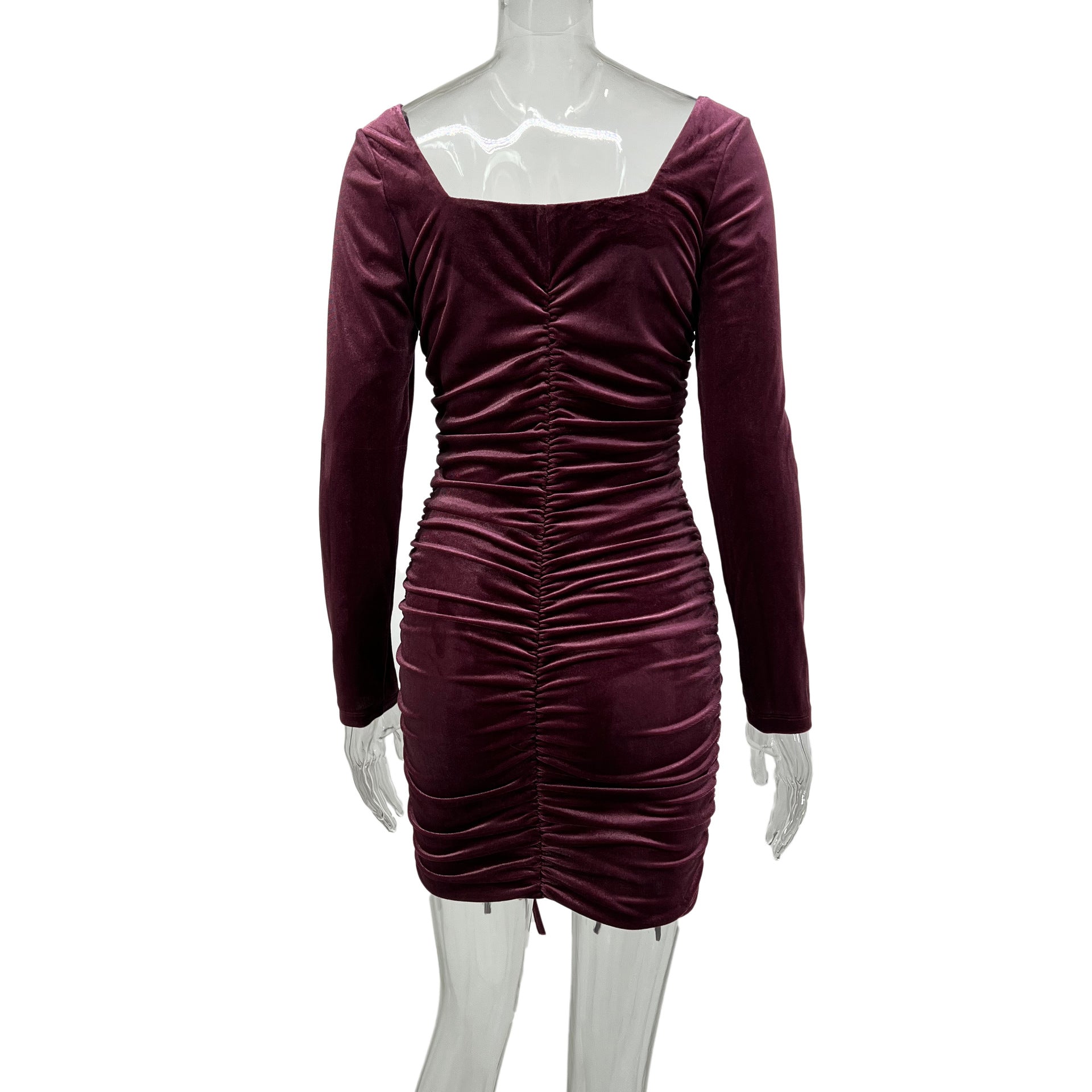 Square Neck Elegant Dress Pleating Sheath Tight Dress