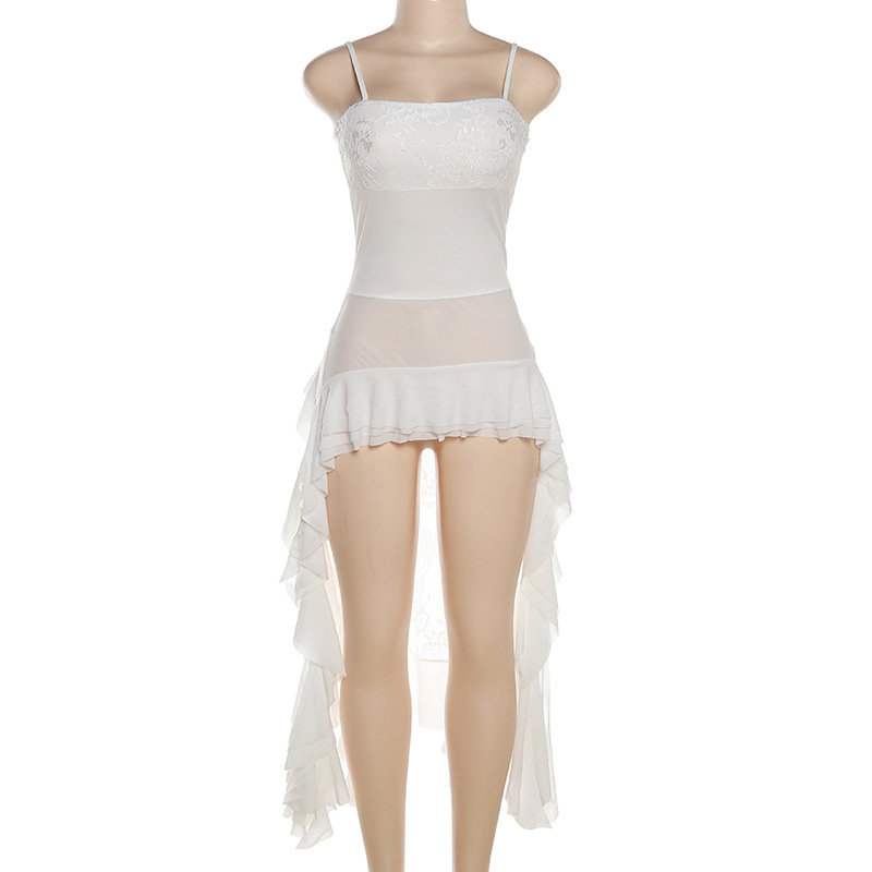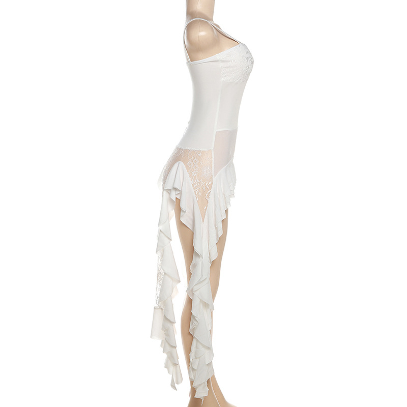 Strap off Neck Lace Stitching Irregular Asymmetric Dress