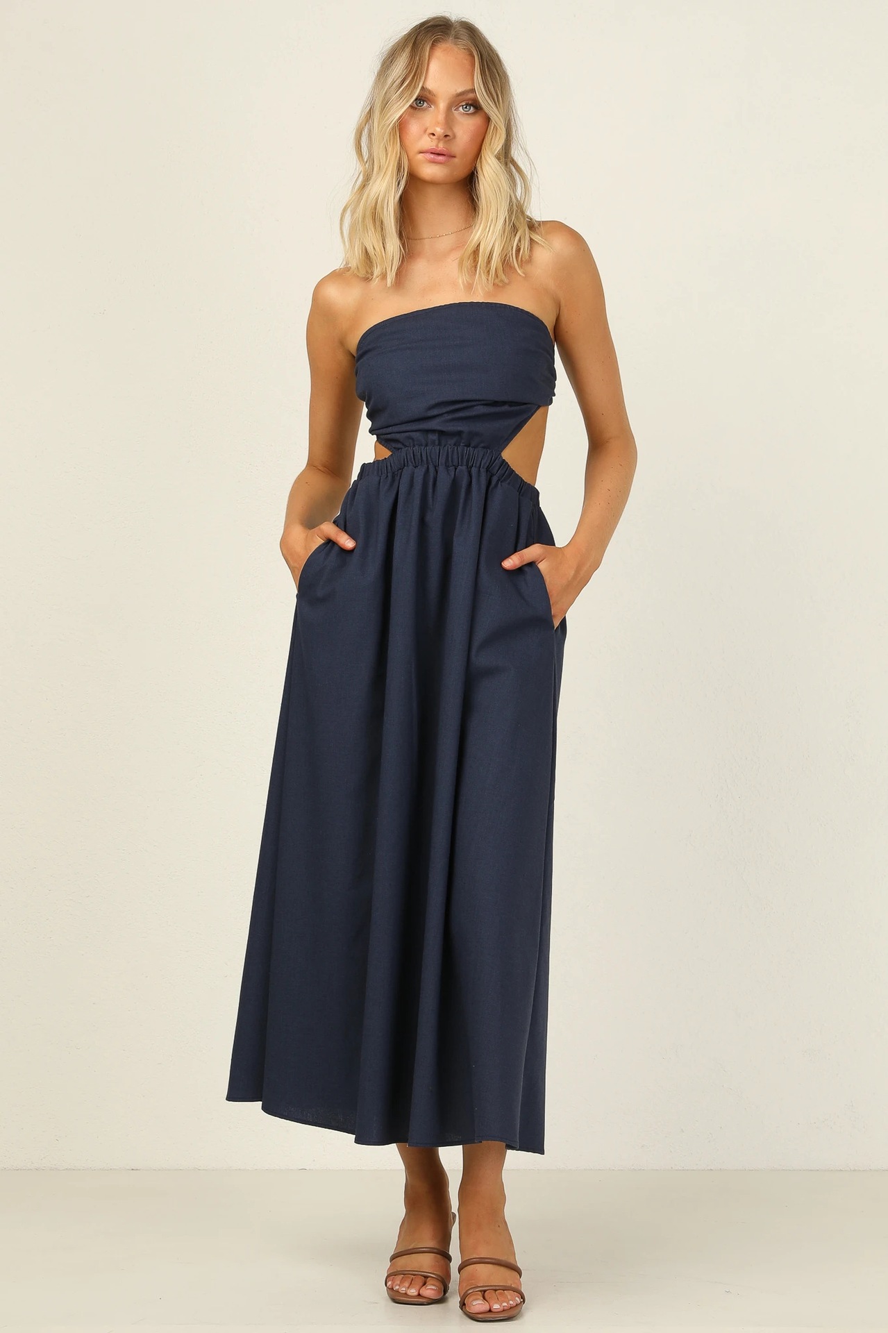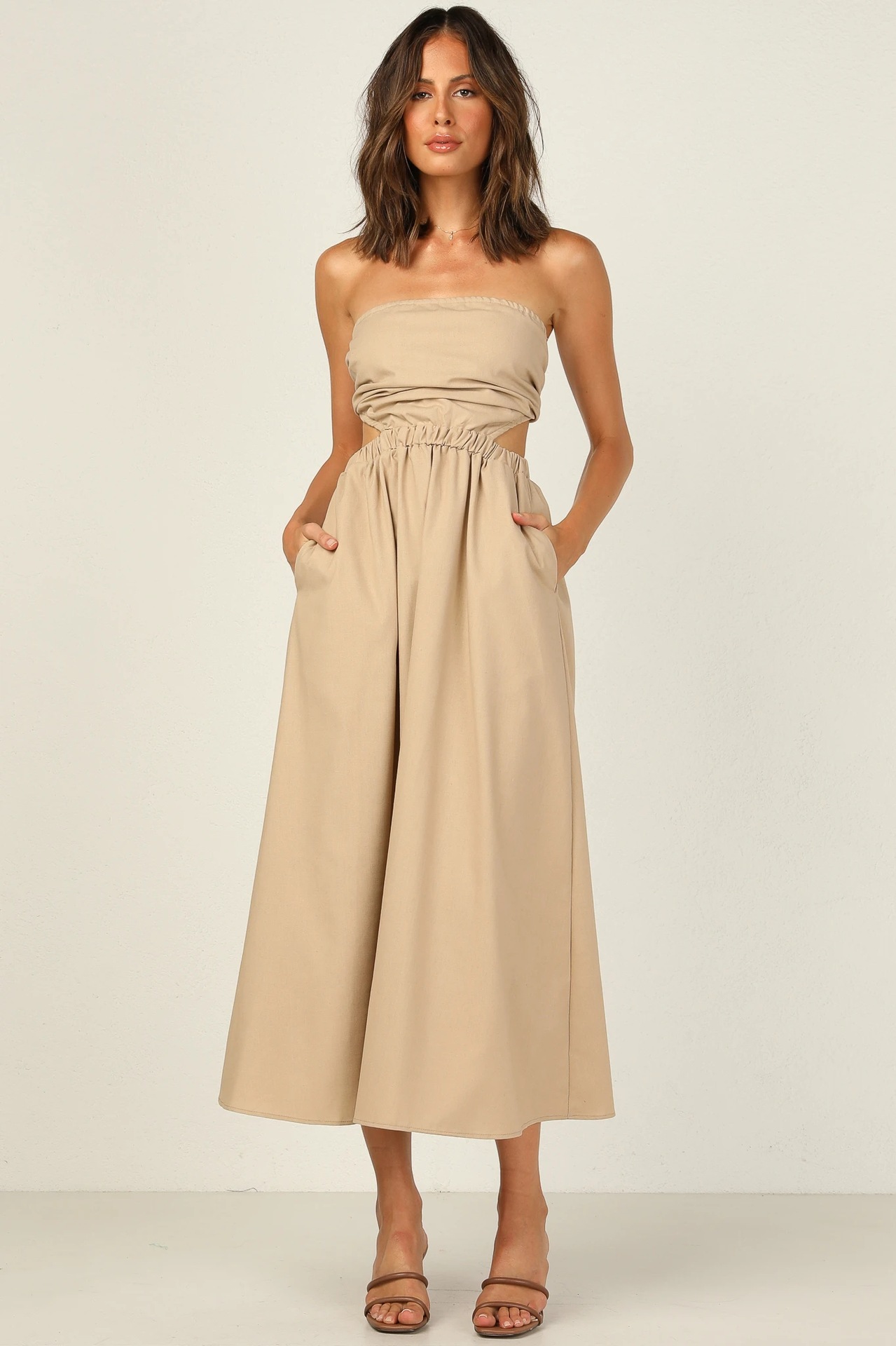 Sundress Maxi Strapless Trendy Solid Color Chest-Wrapped Dress