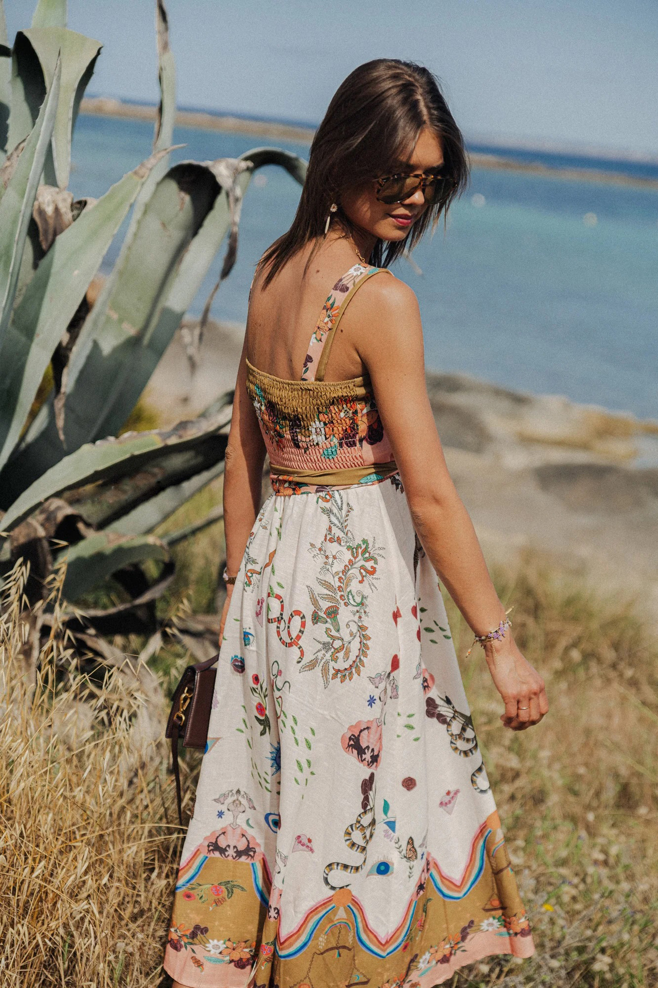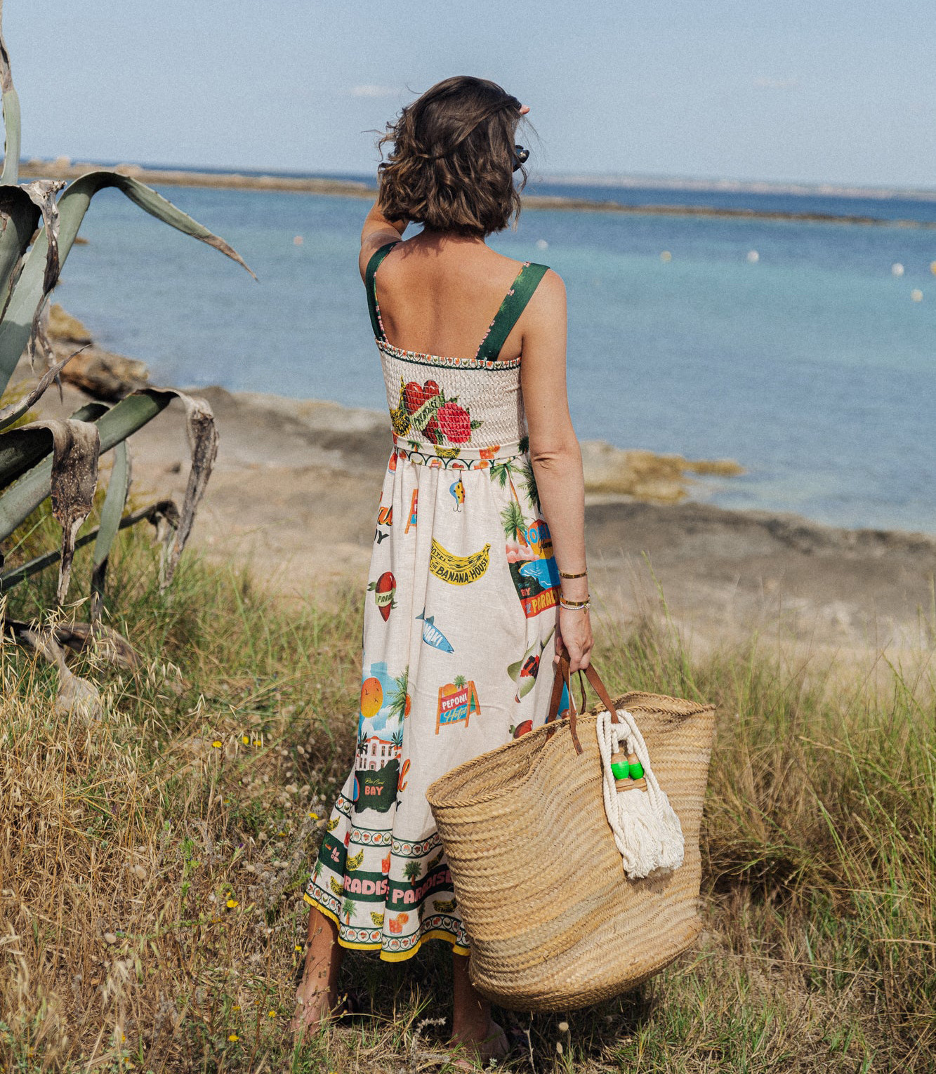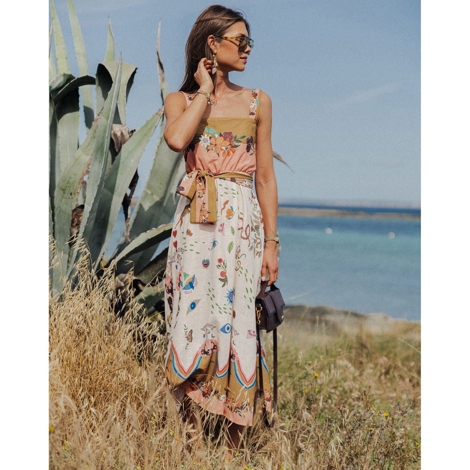 Suspender Printing Pleated Dress Loose Casual Holiday Dress