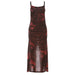 Suspenders Slim Retro Floral Print Slit Sheath Elegant Dress