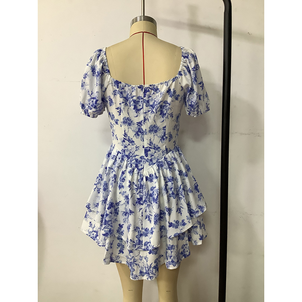 Sweet Dress Printed Slim Fit Short Sleeve Tiered Dress Short Dress
