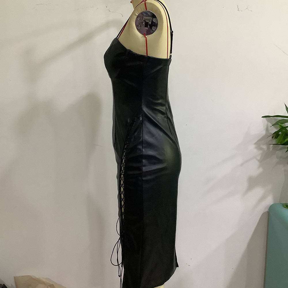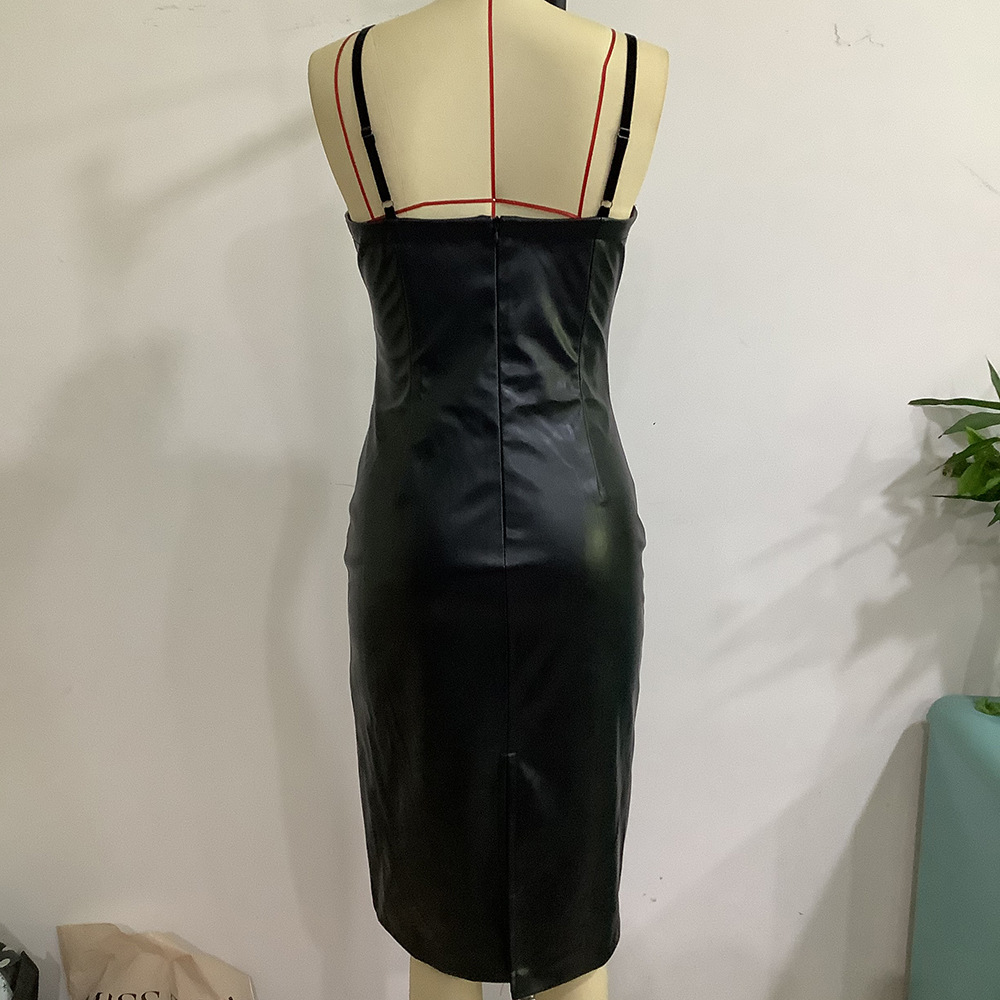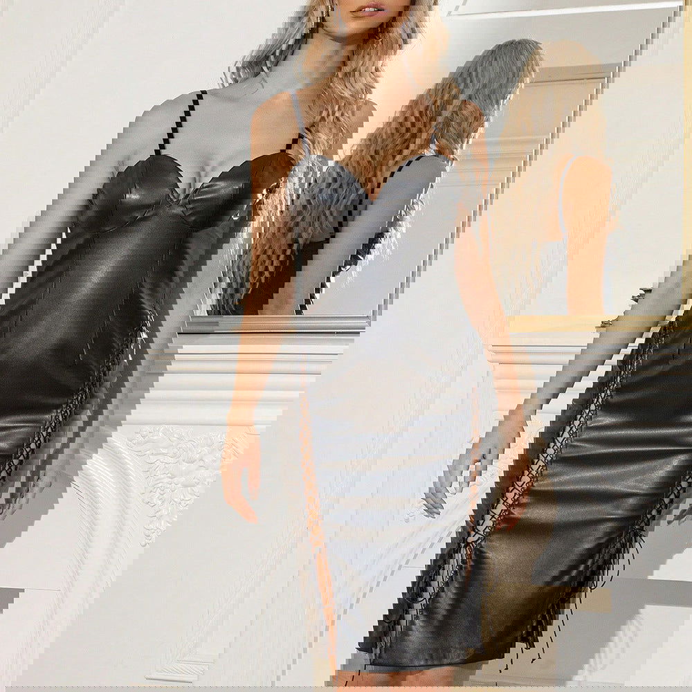 Sweet Spicy Dress Faux Leather Backless Night Club Slip Hip Dress
