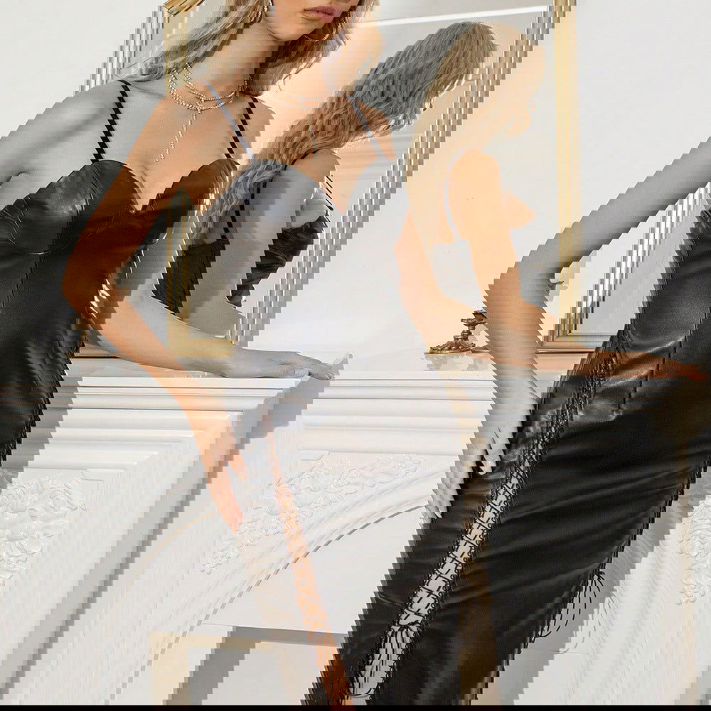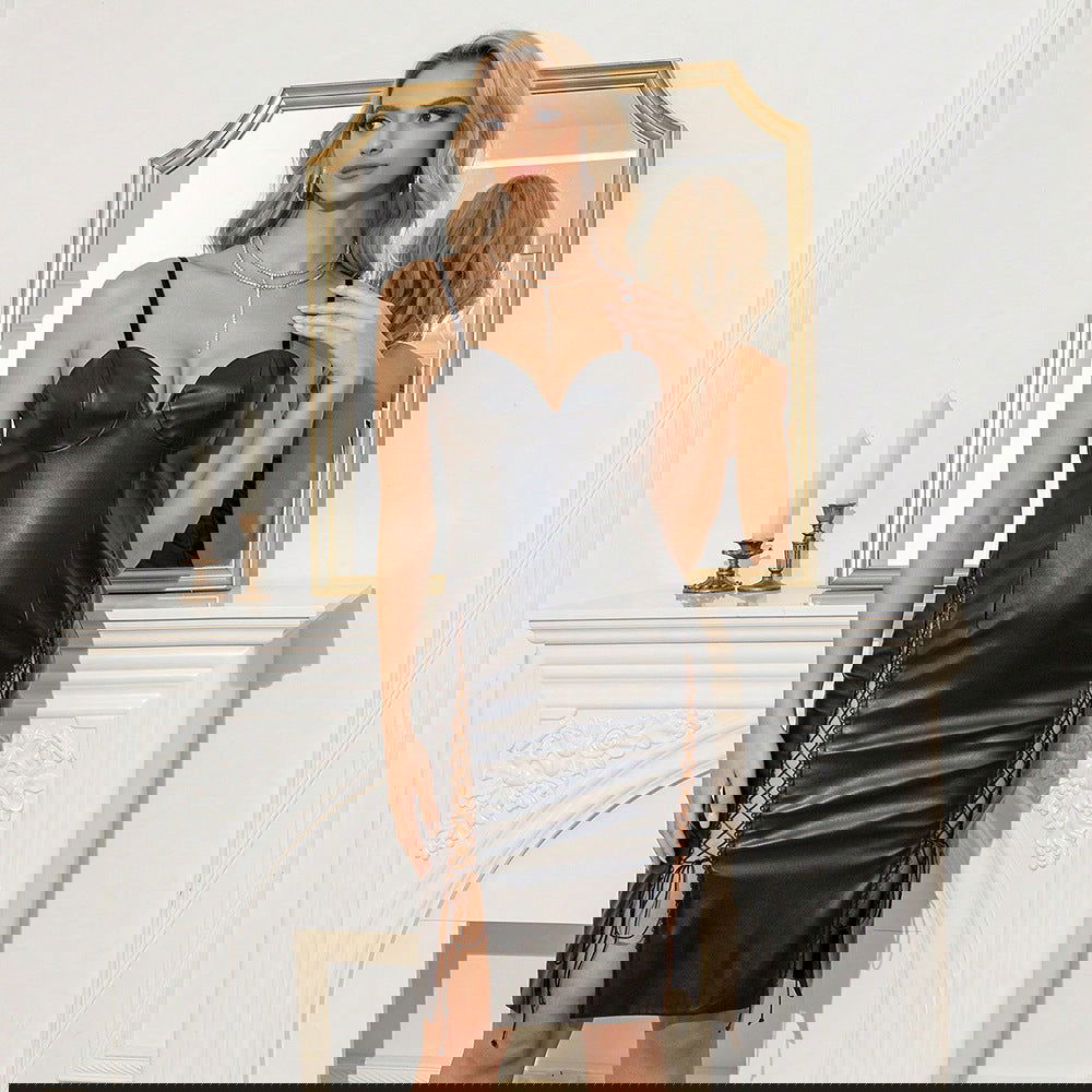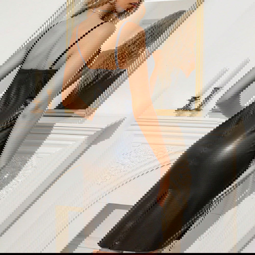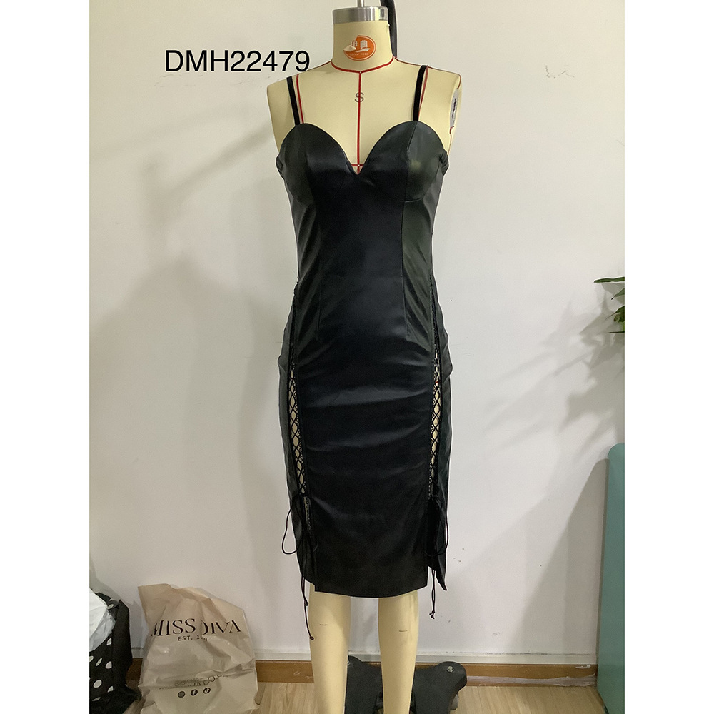Sweet Spicy Dress Faux Leather Backless Night Club Slip Hip Dress