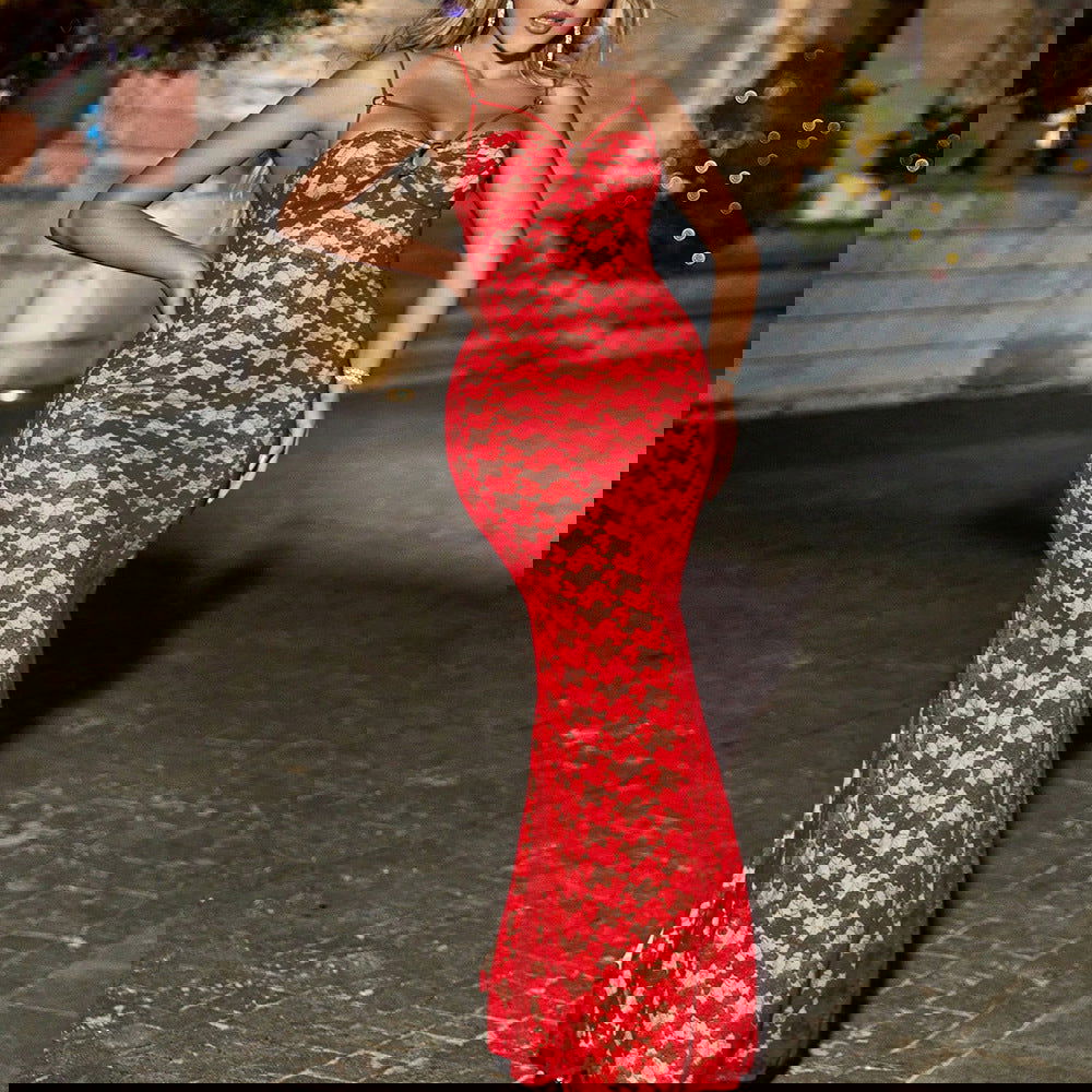 Sweet Spicy Dress Slim Fishtail Strap Dress Evening Dress