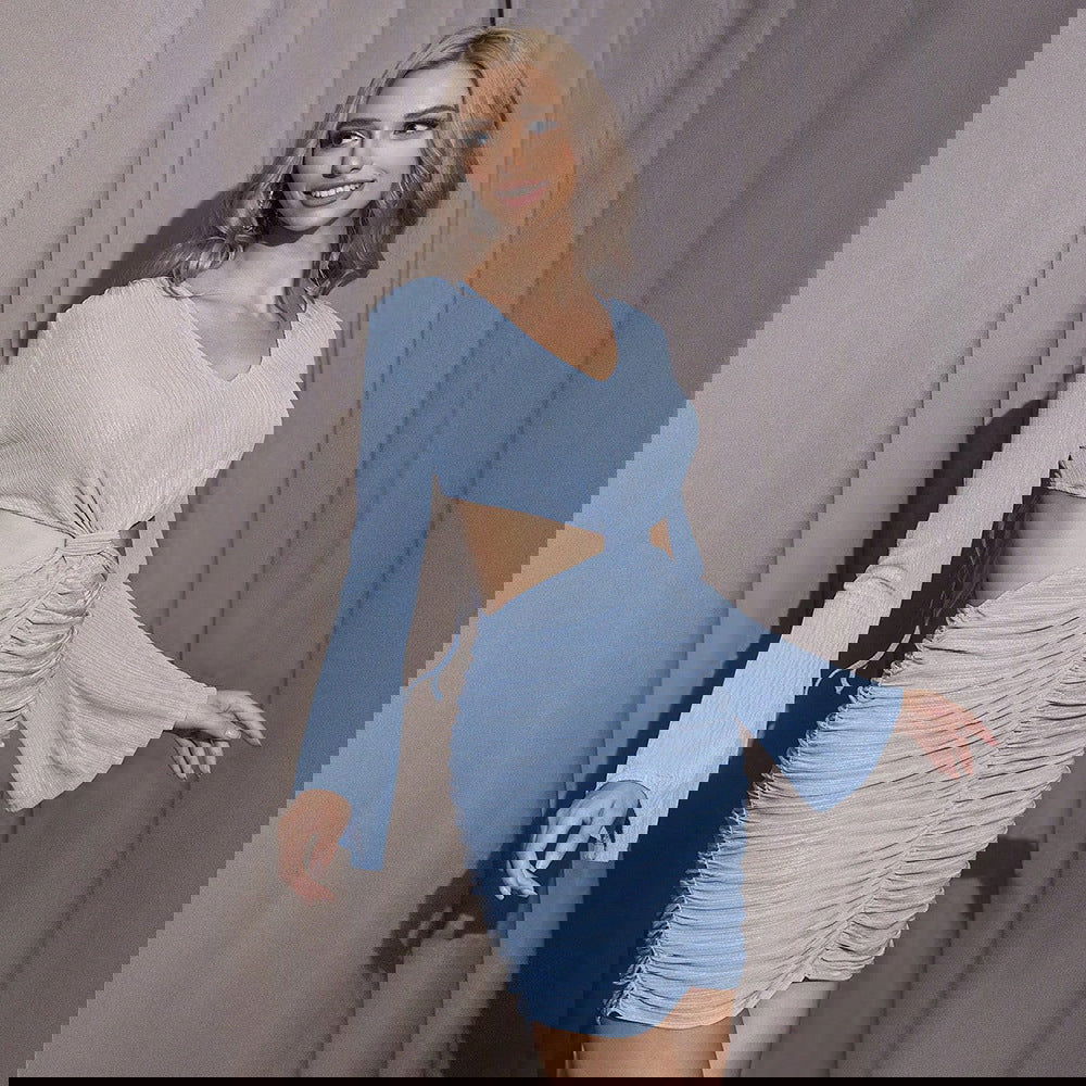 Sweet Spicy Hollow Out Cutout Long Sleeve Pleated Backless Short Dress